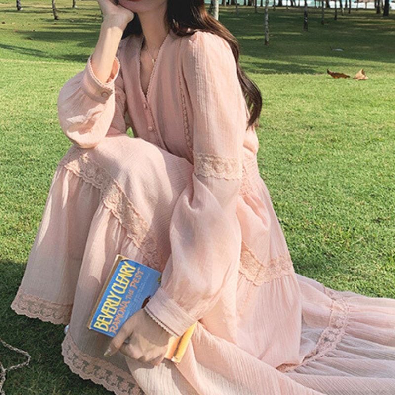 春色ピンクのロング丈ワンピース♡