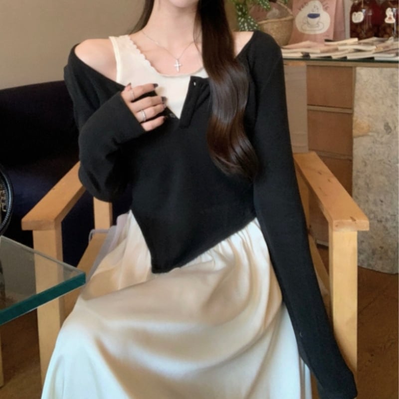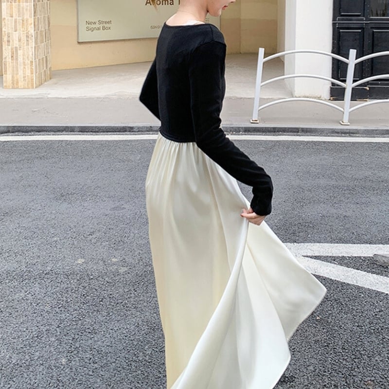 トップスとサテンスカートの重ね着風ワンピース♡