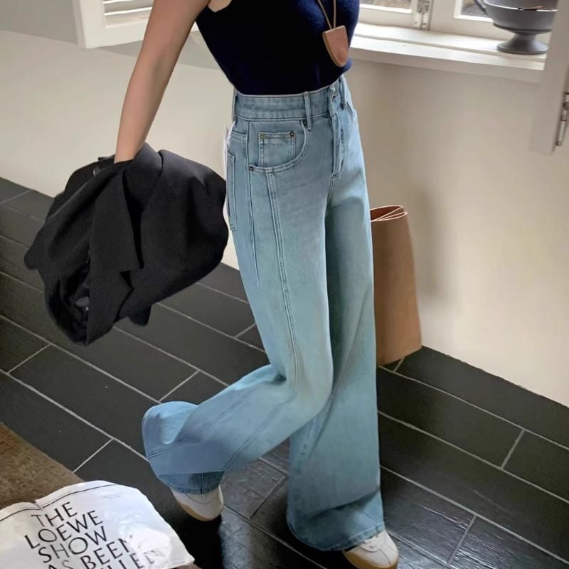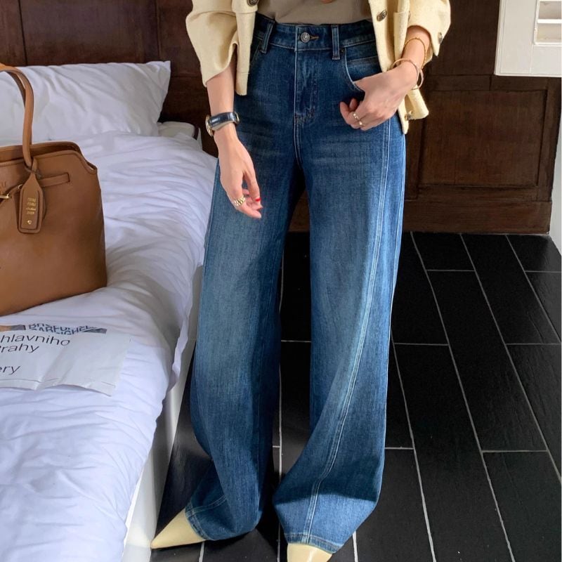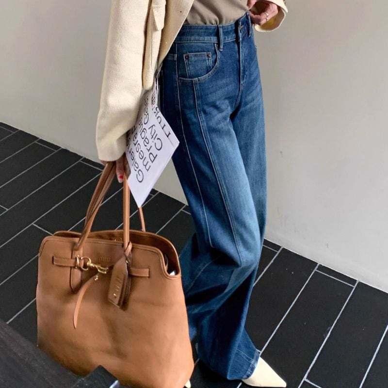 サイドステッチフレアワイドデニムパンツ♢全3色 12292