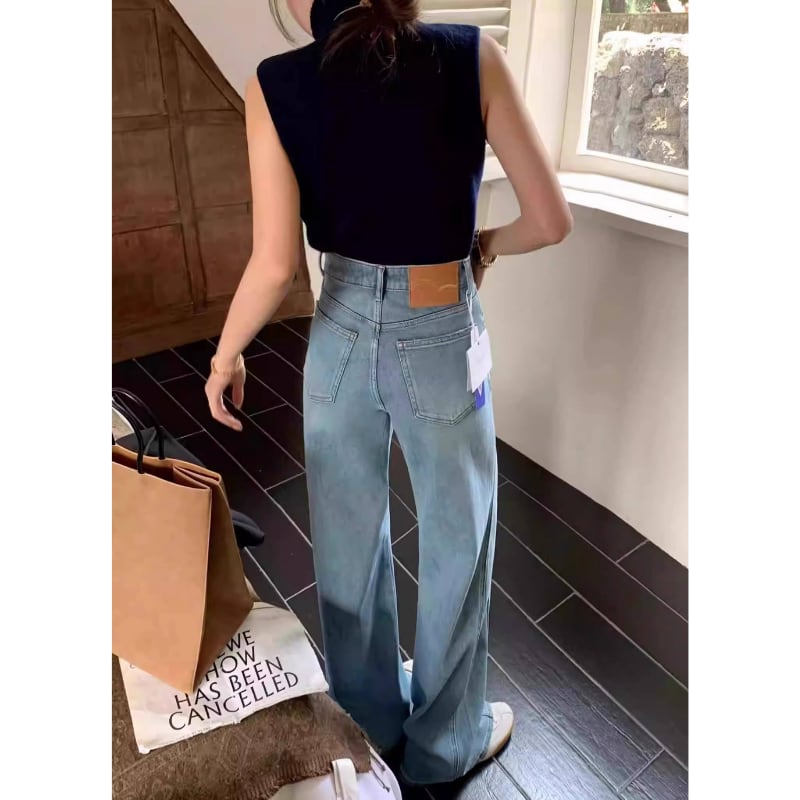 ハイウエストデザインのワイドレッグデニムは