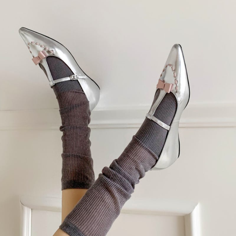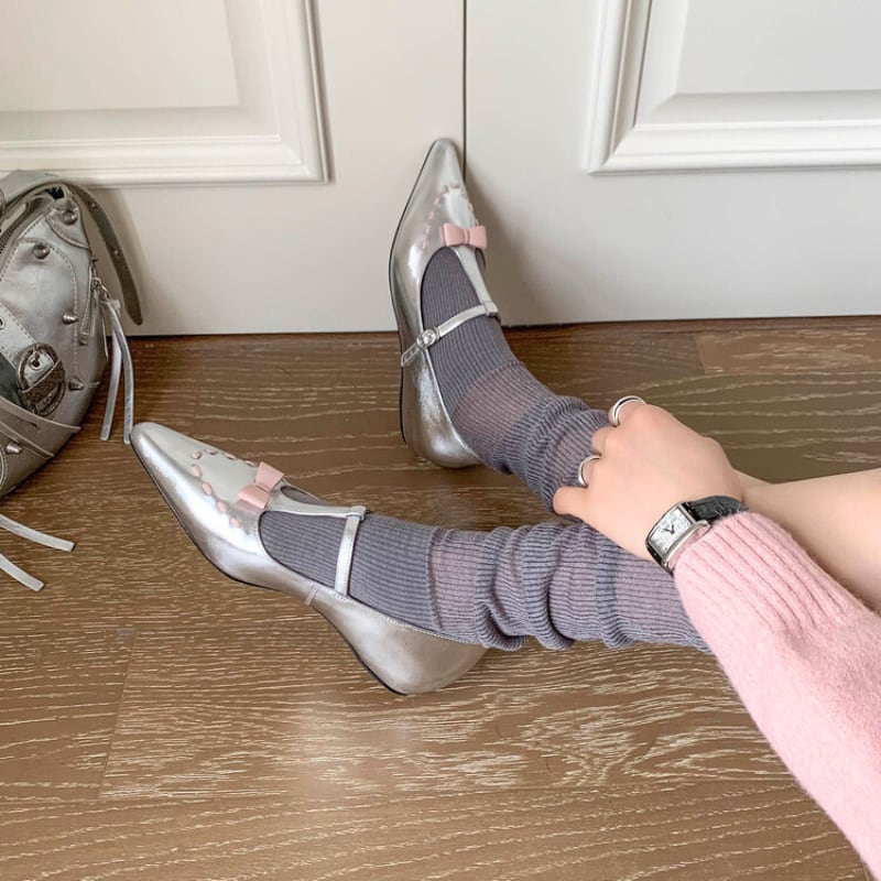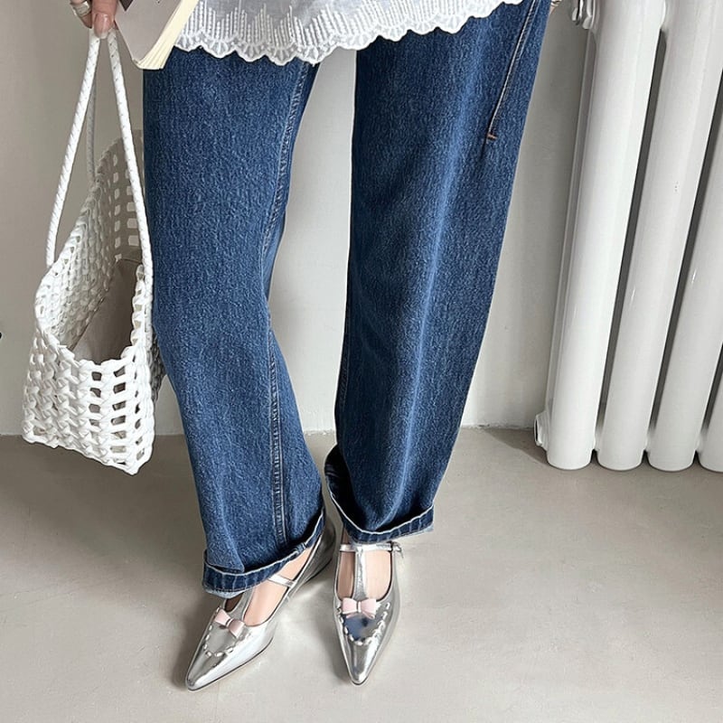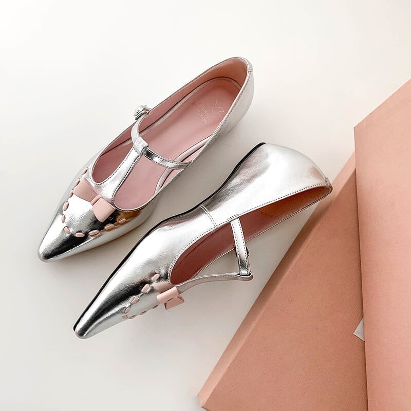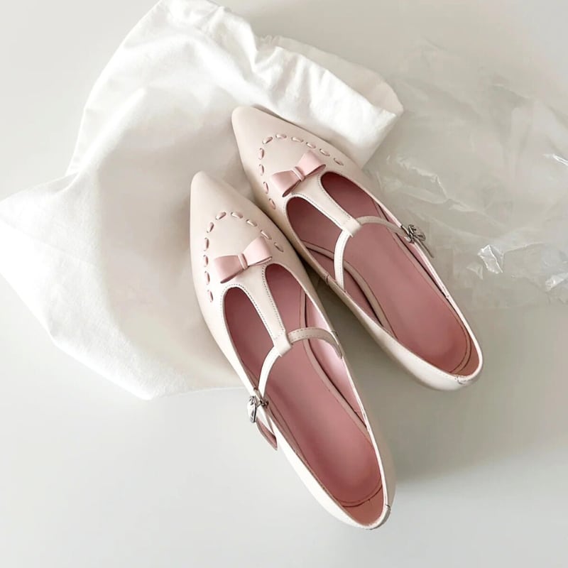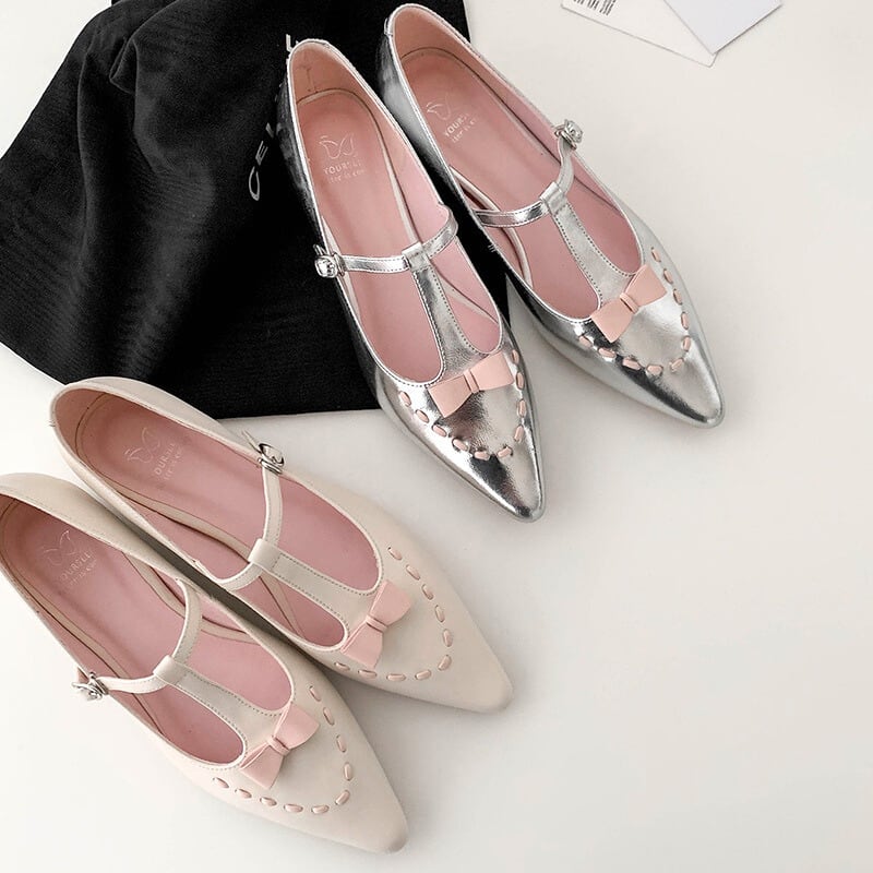 Tストラップポインテッドトゥリボンシューズ♢全2色 11005