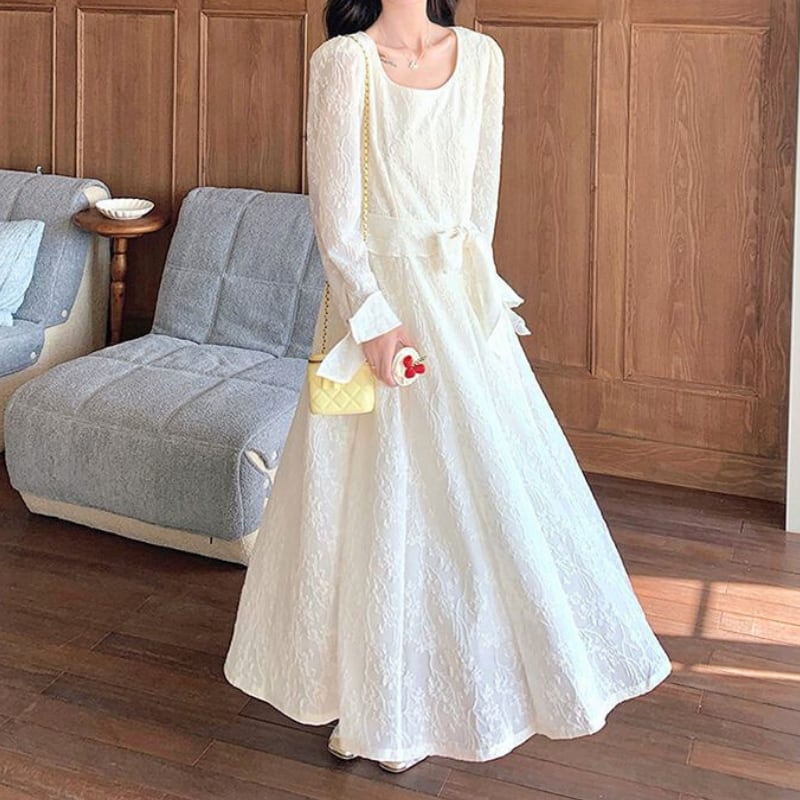 スクエアネックジャカードAラインワンピース♢全2色 11022