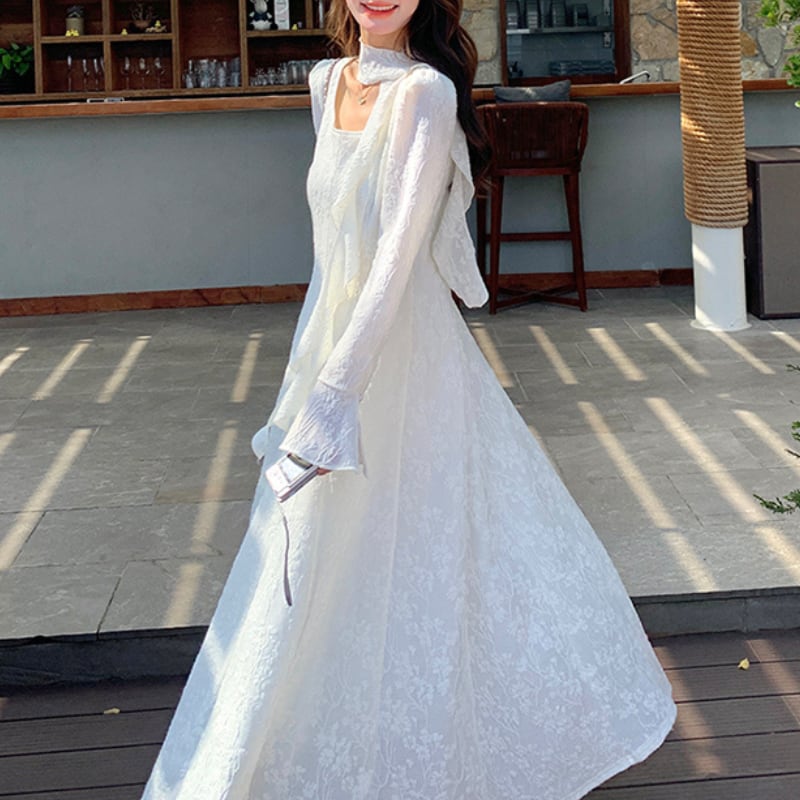 上品なスクエアネックと女性らしい