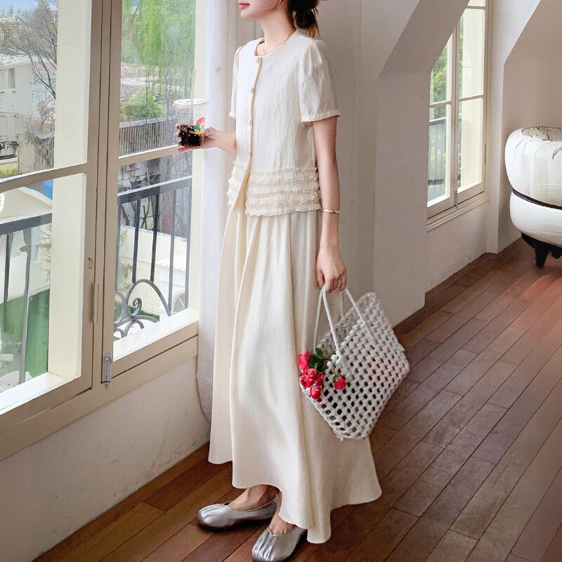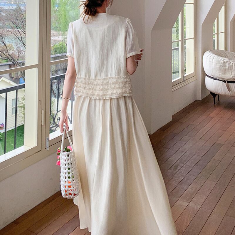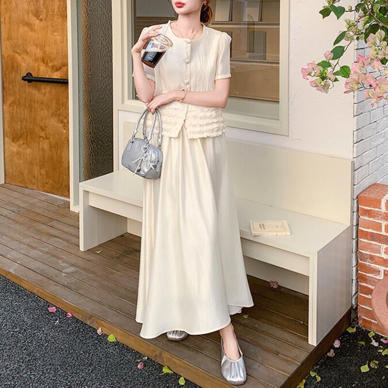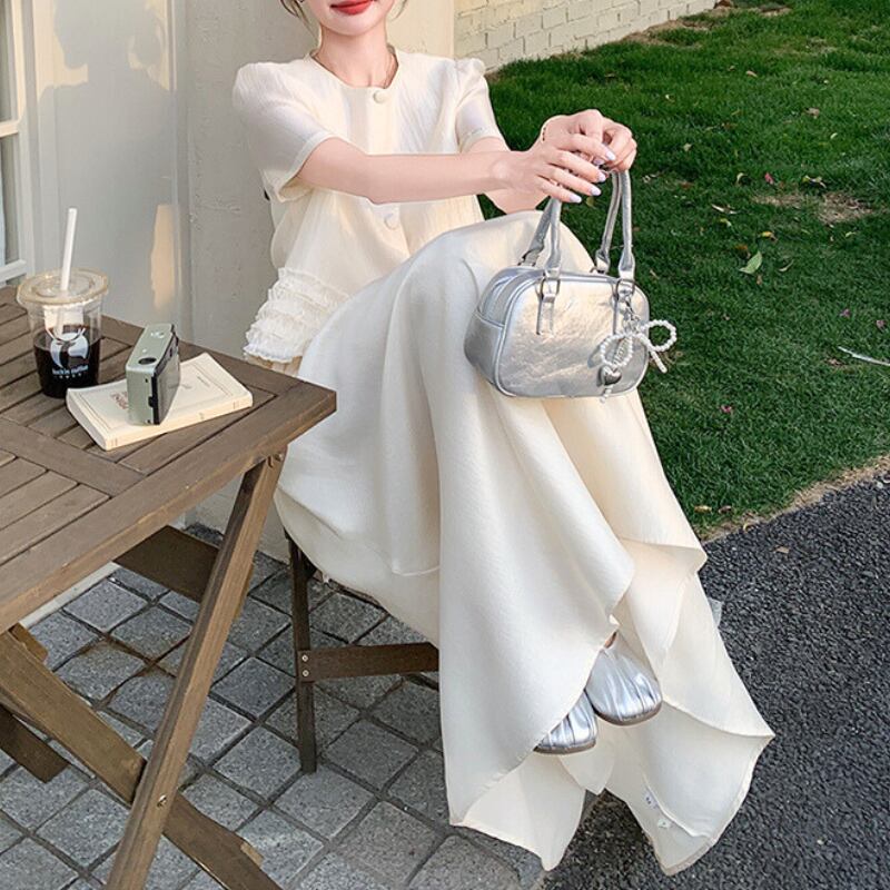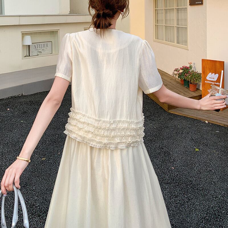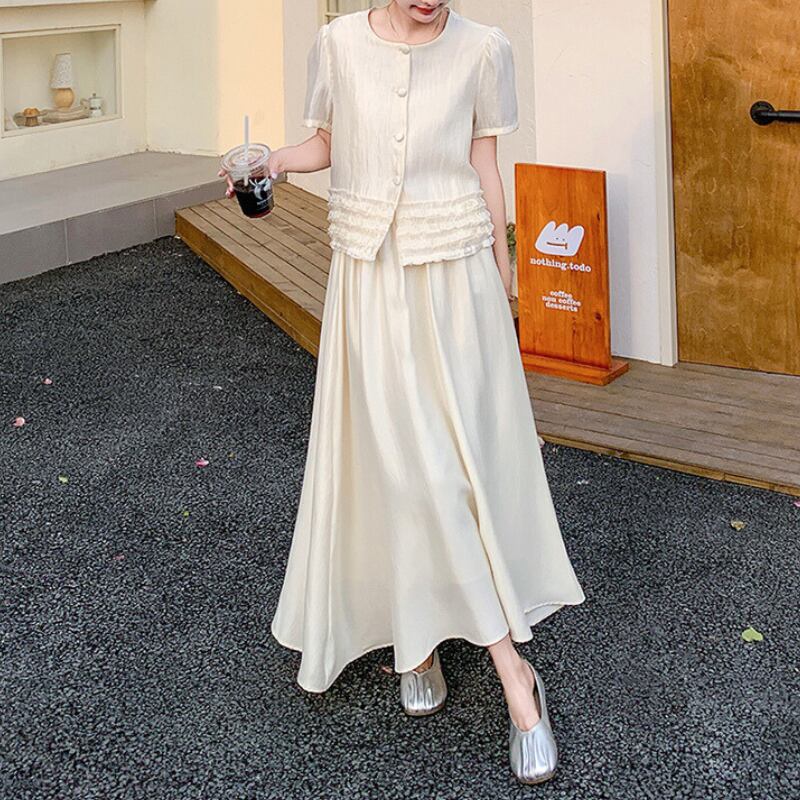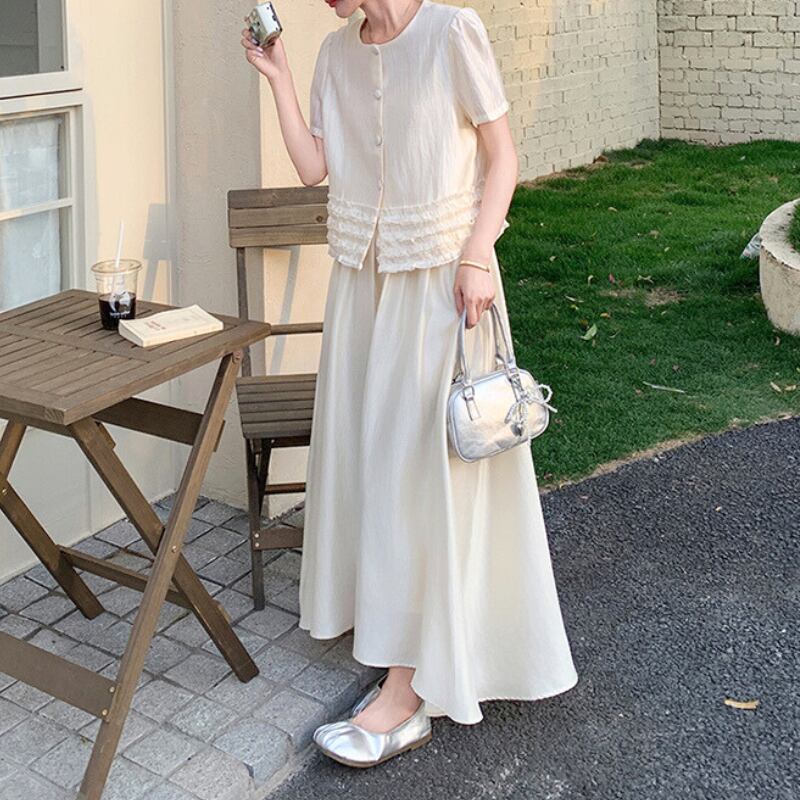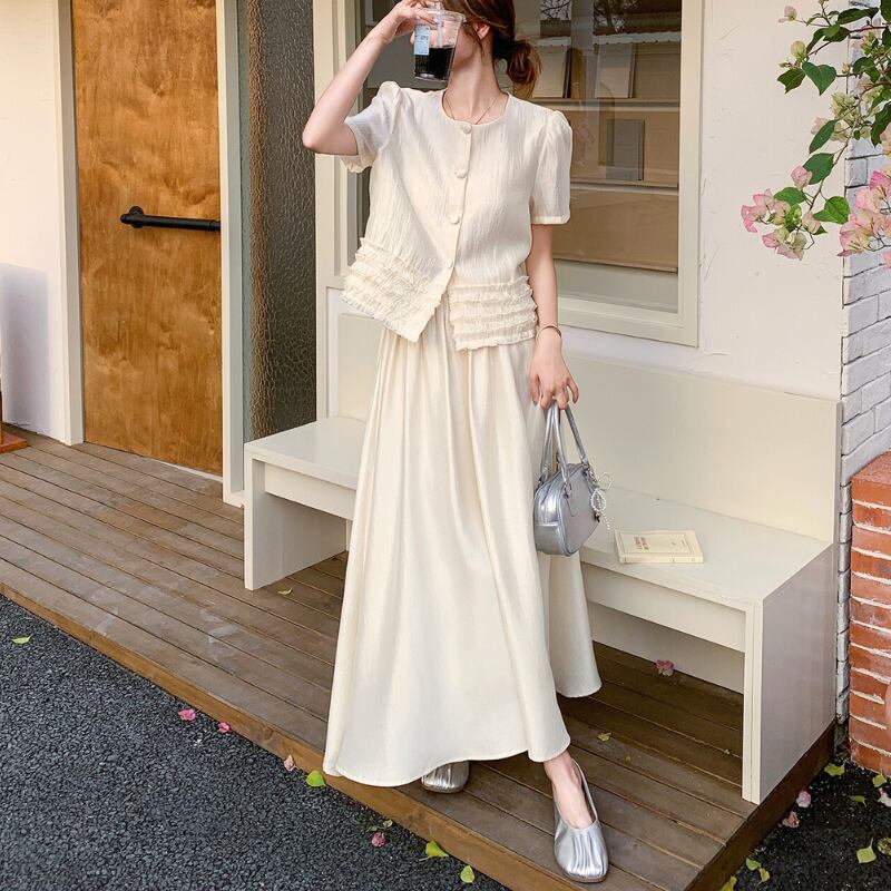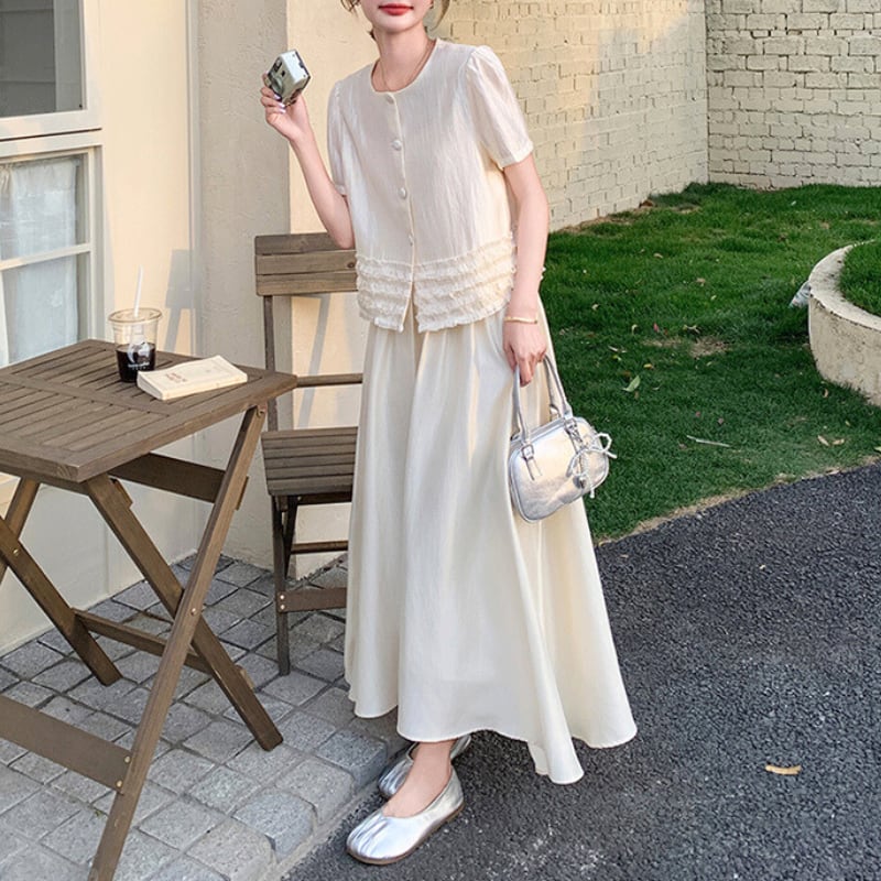 パフスリーブボタンデザイン+スカートセットアップ 11027
