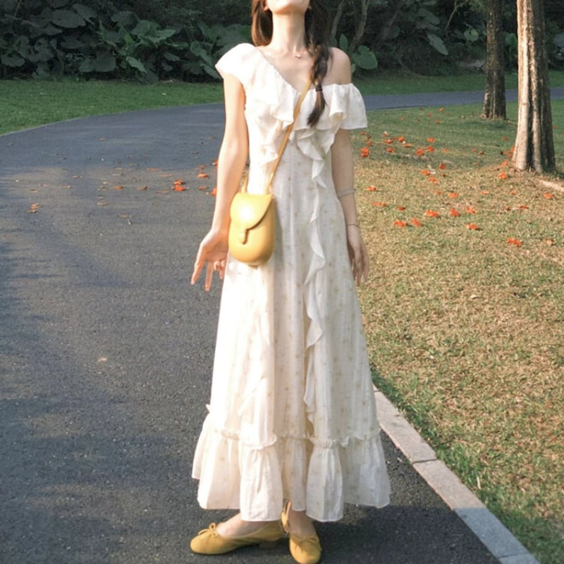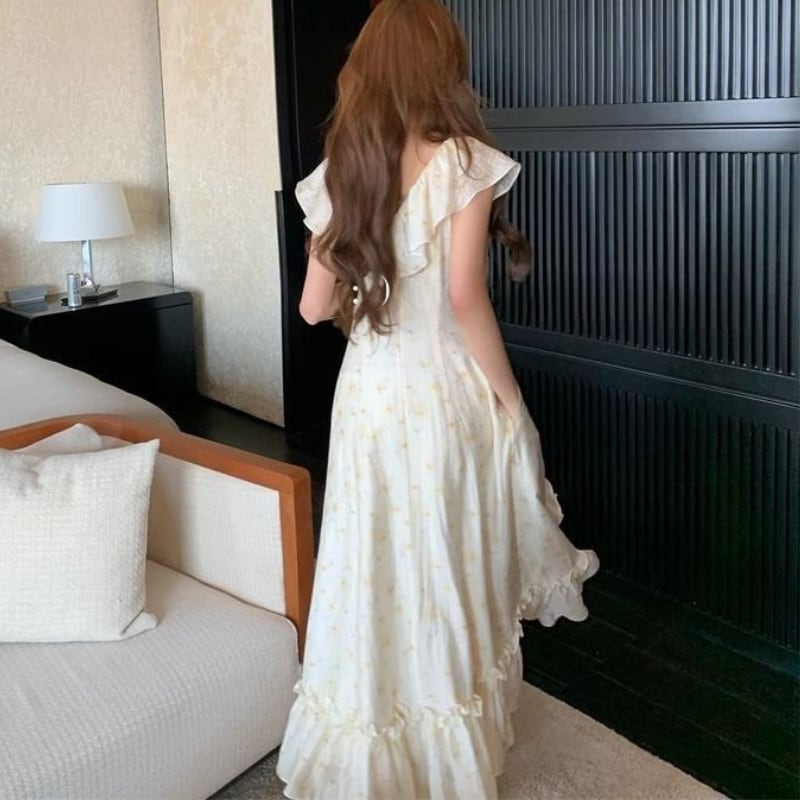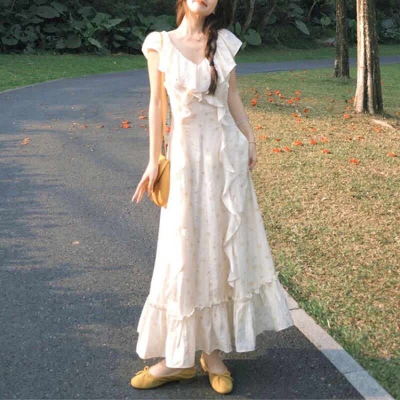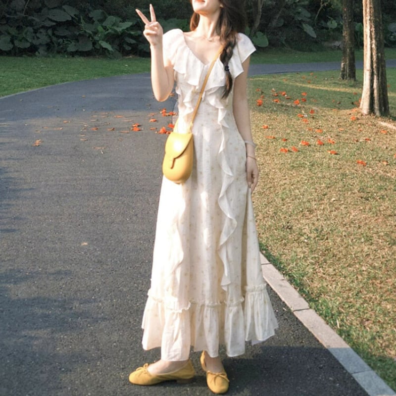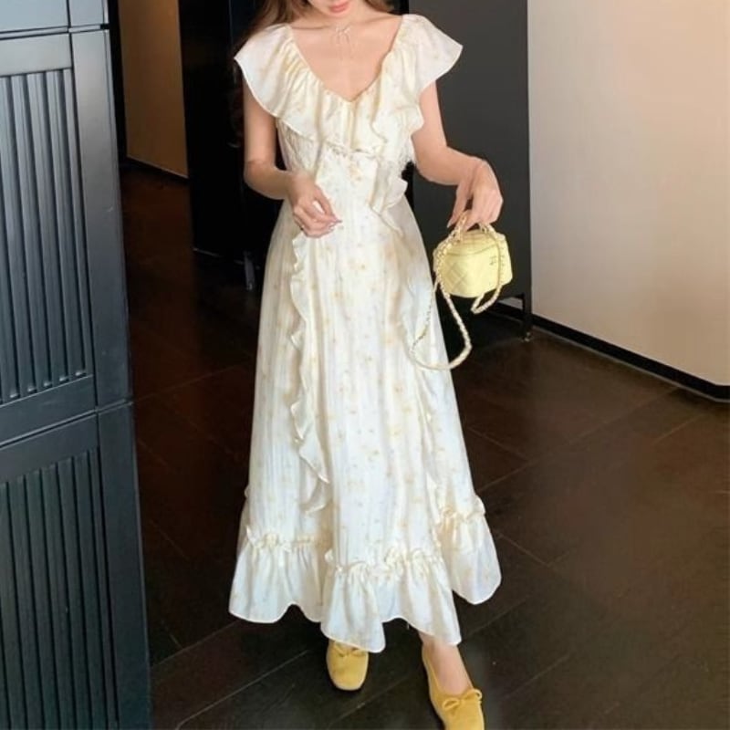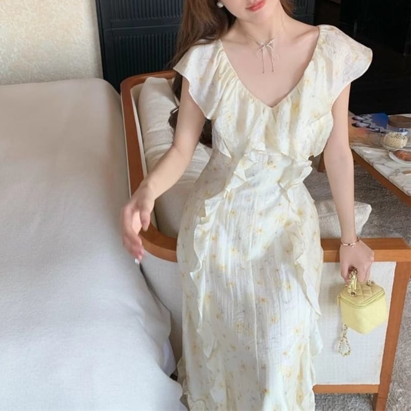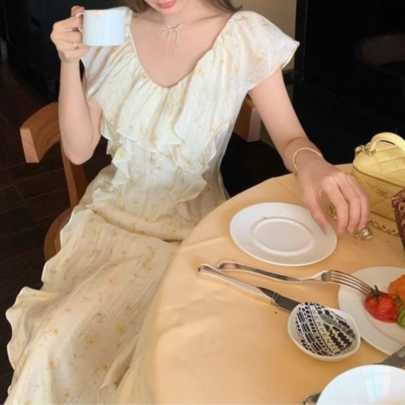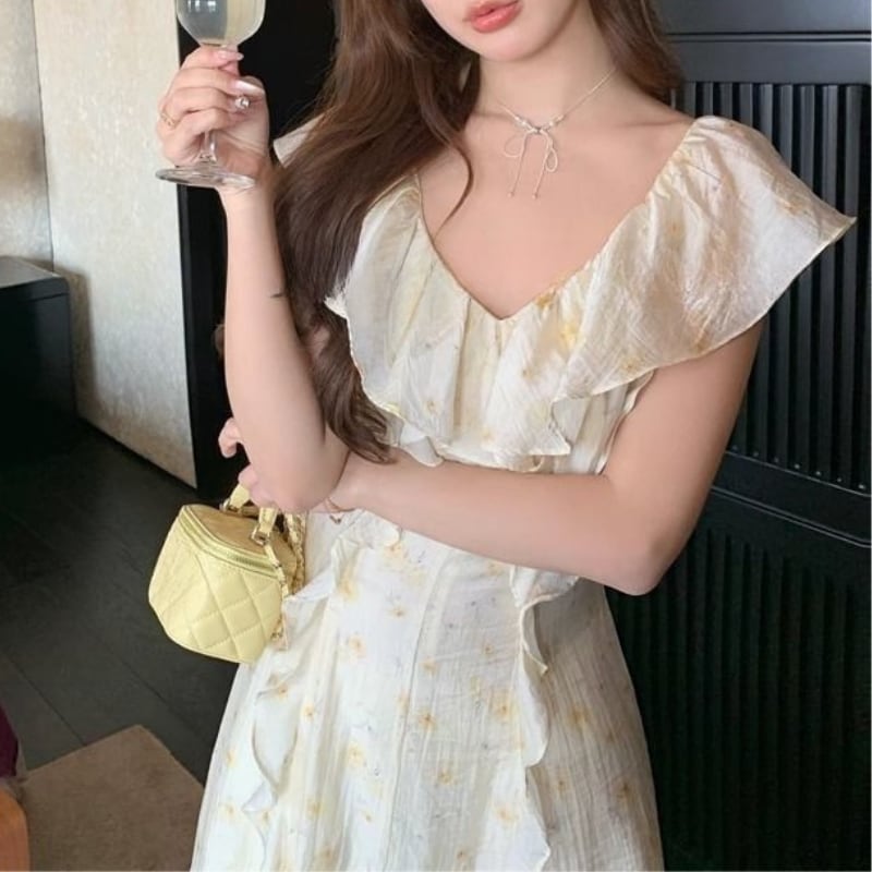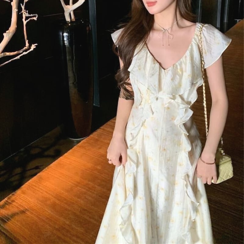 フレアースリーブVネックフリルワンピース 11032