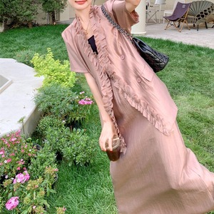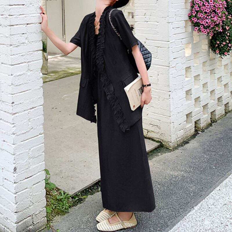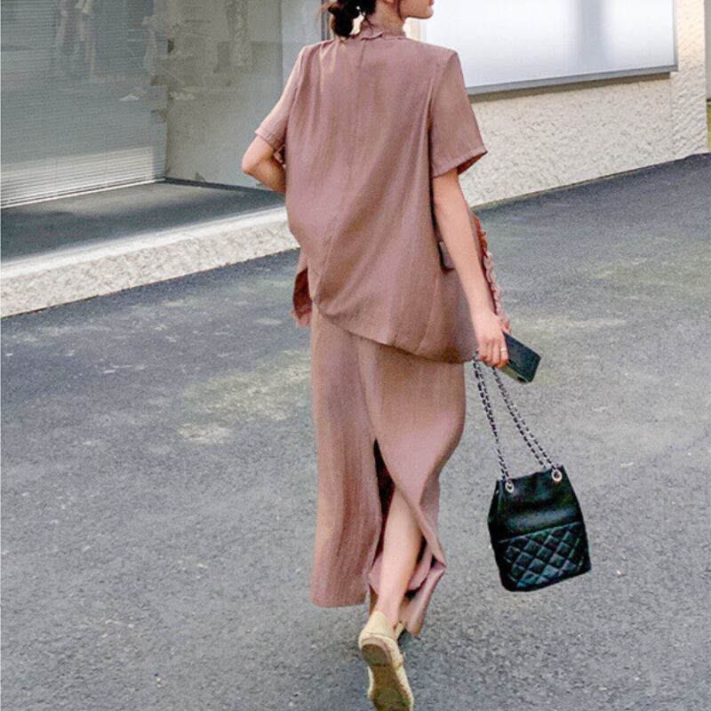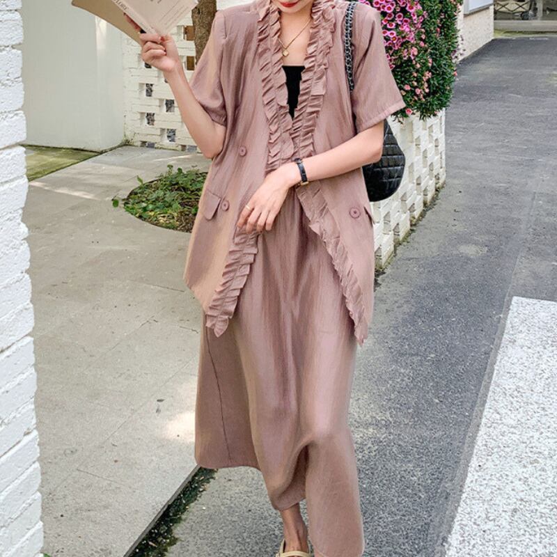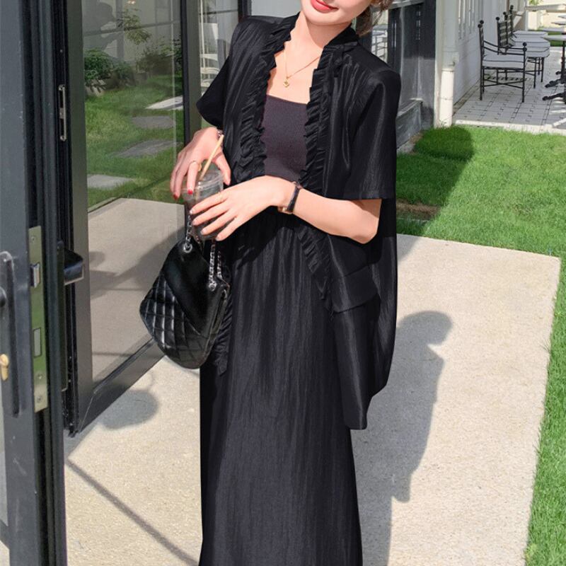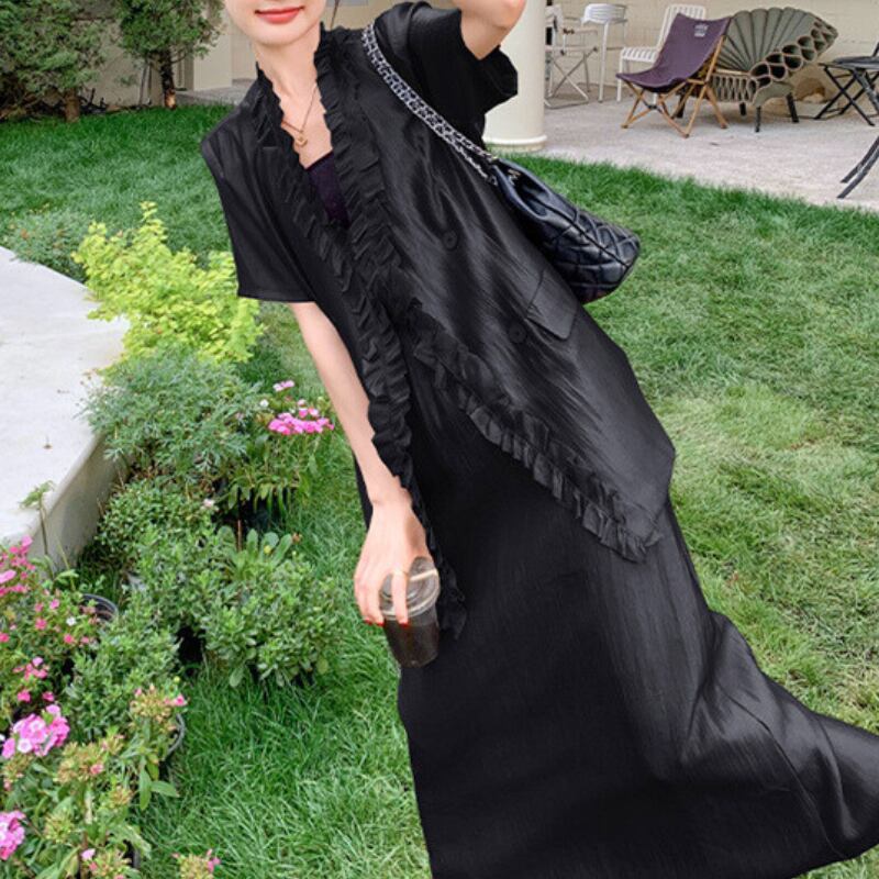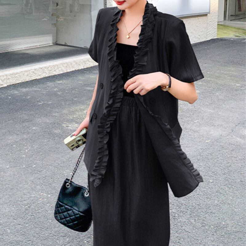フリルネック半袖ジャケット+ スカートセット♢全2色 11044