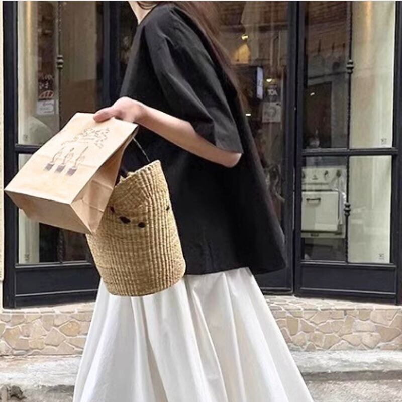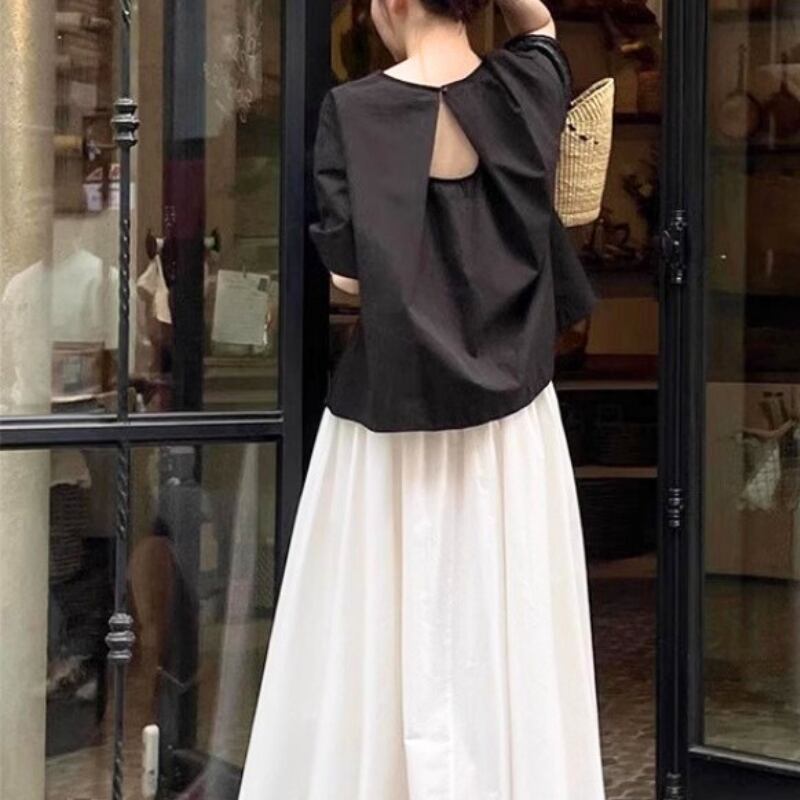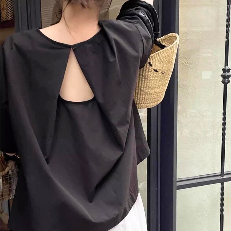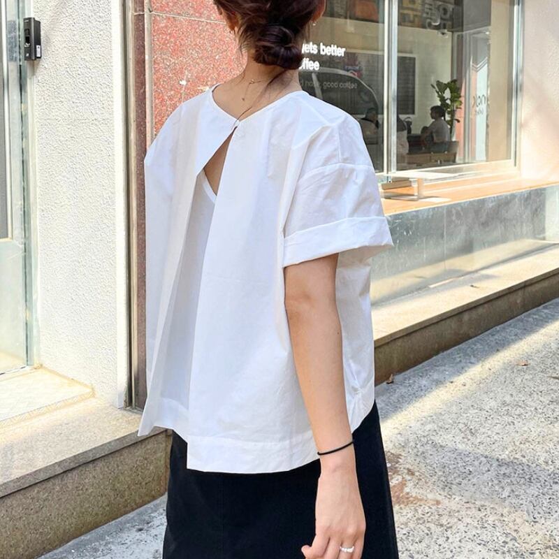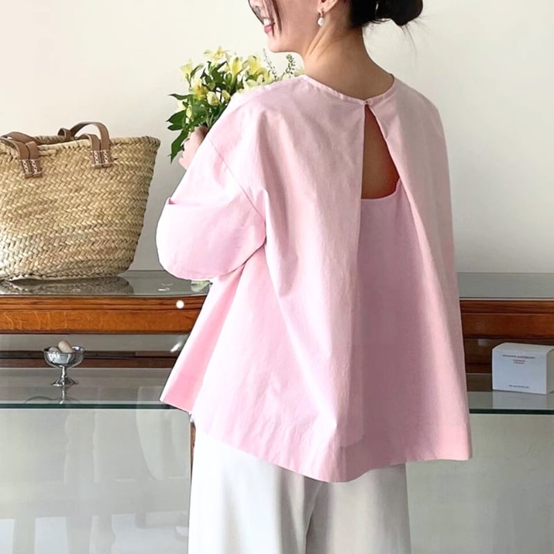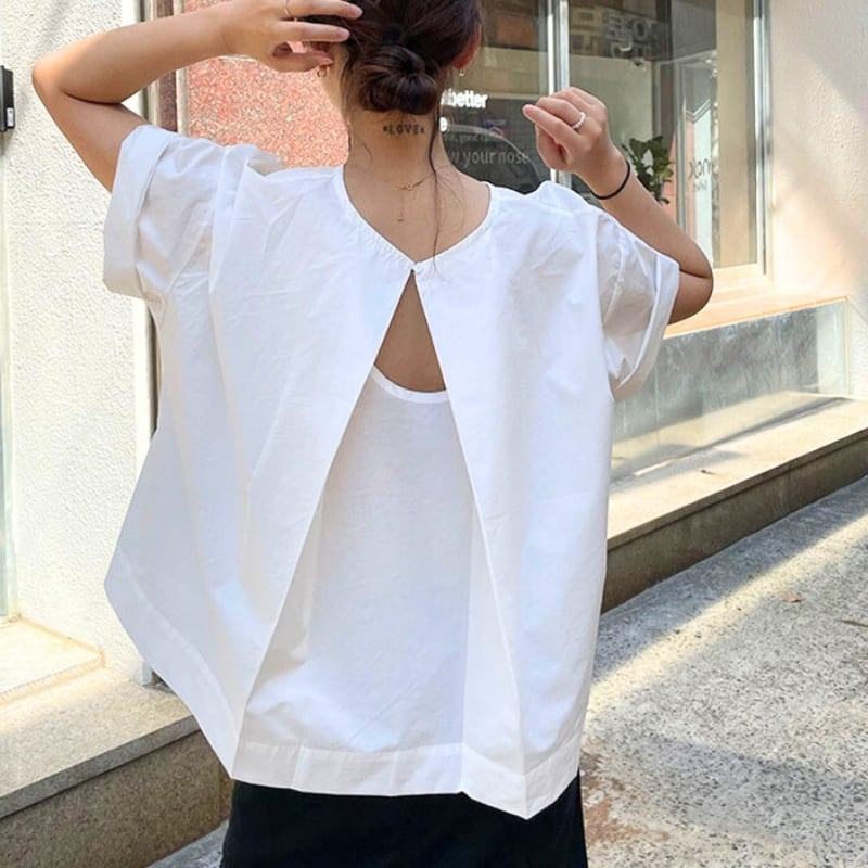 バックオープンボックスシルエットブラウス♢全3色 12312