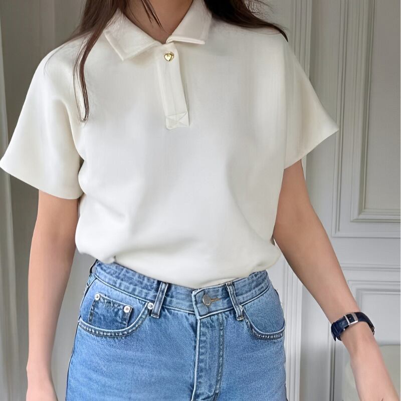 ハートボタンポロシャツショートスリーブ♢全3色 12315