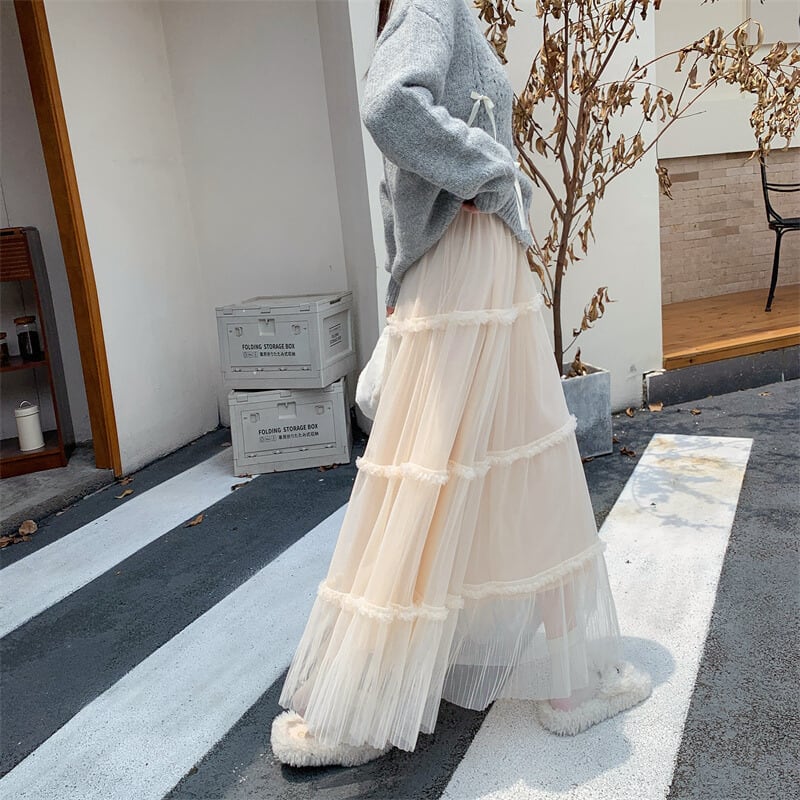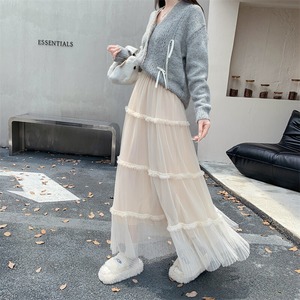 軽やかに揺れるチュール素材が、歩くたびに上品な