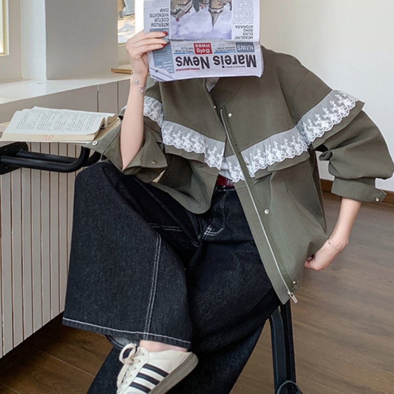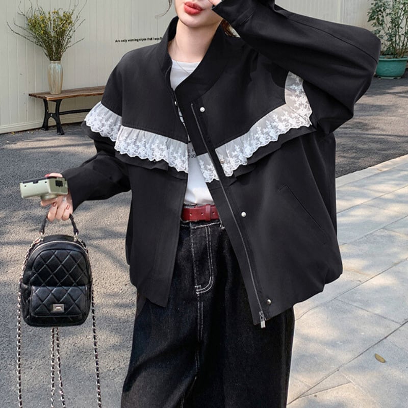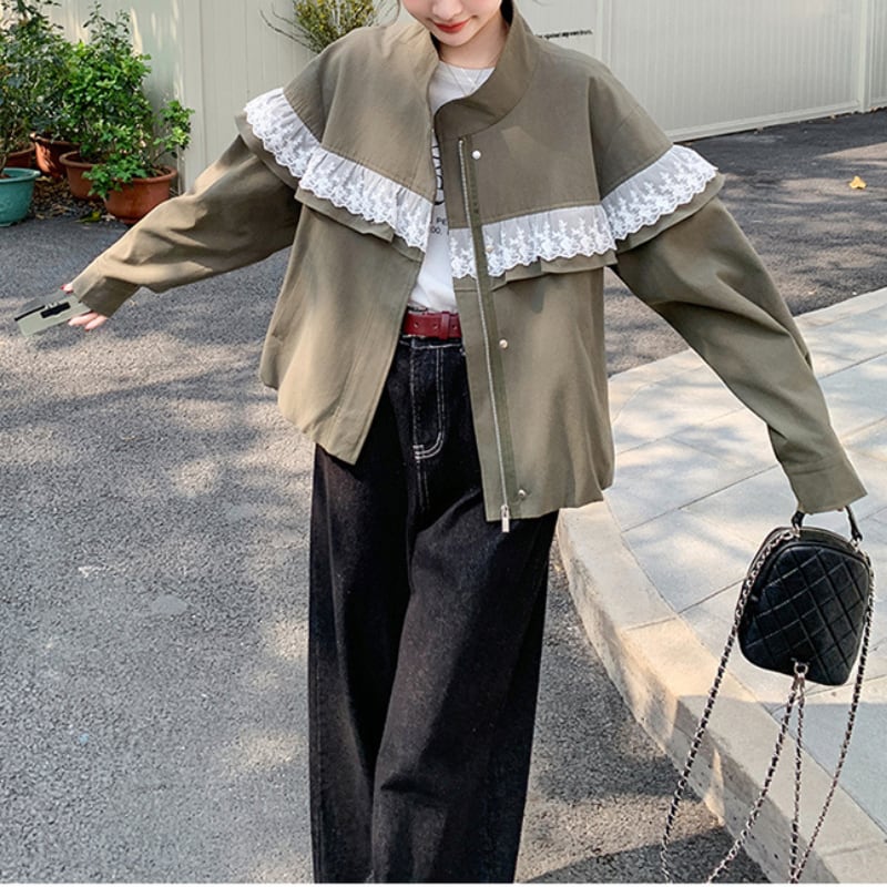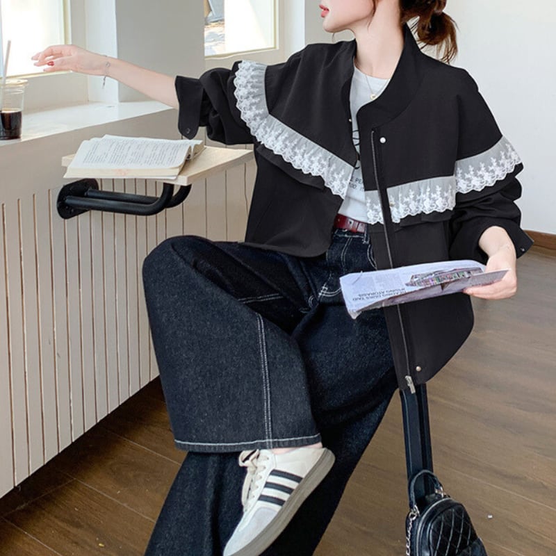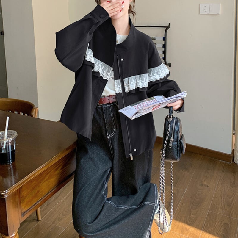 レーストリムデザインジップアップジャケット♢全2色 11139