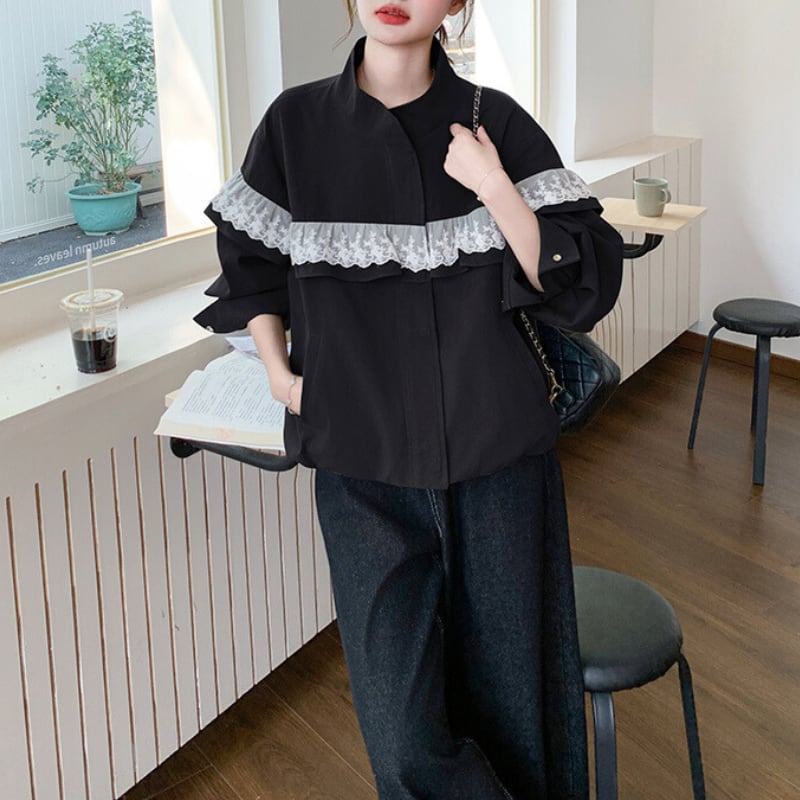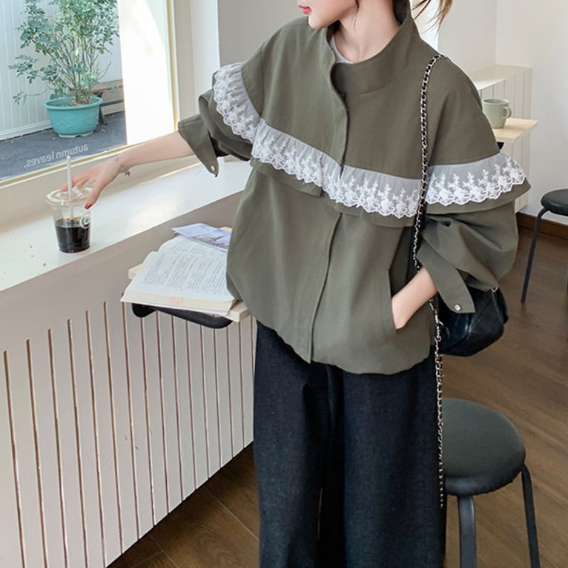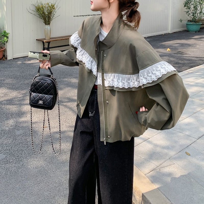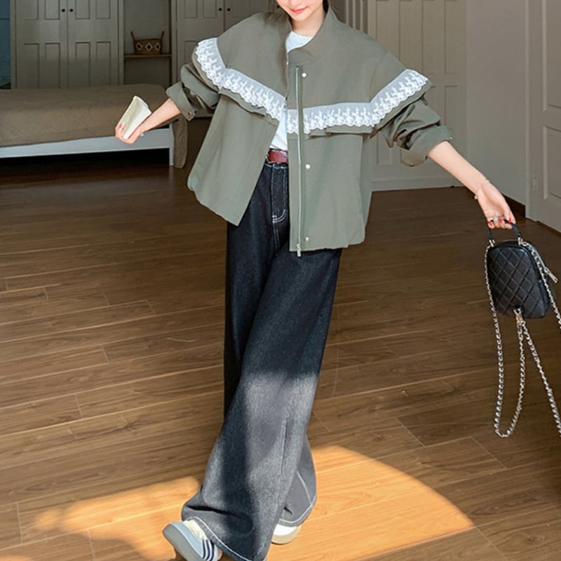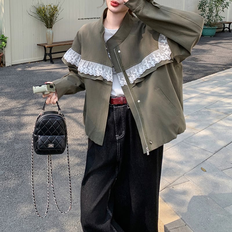 レーストリムデザインジップアップジャケット♢全2色 11139