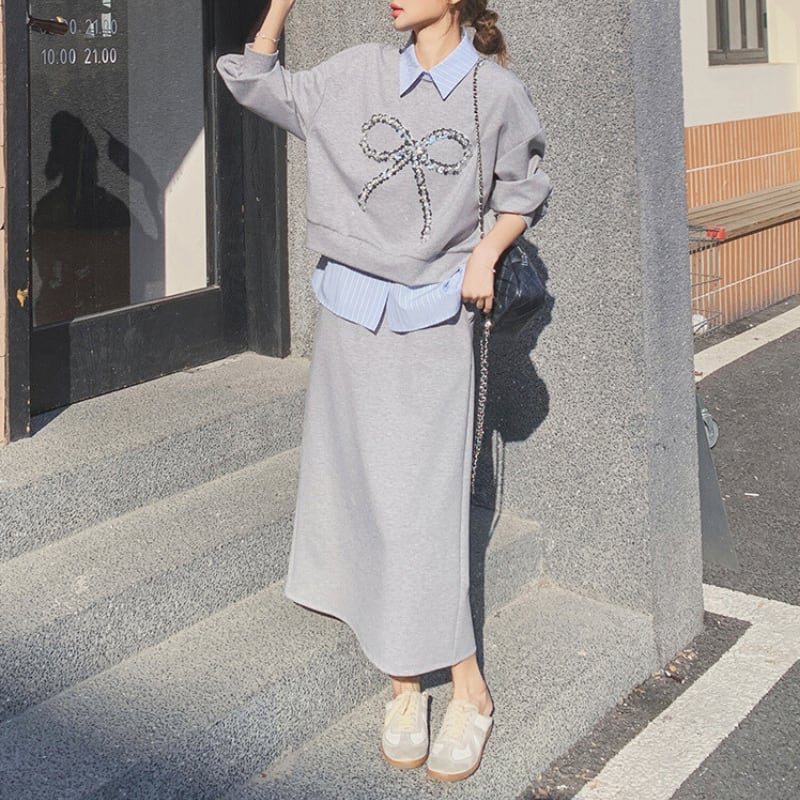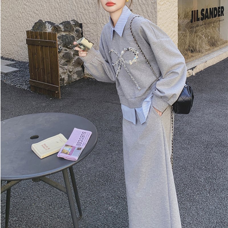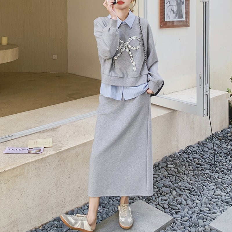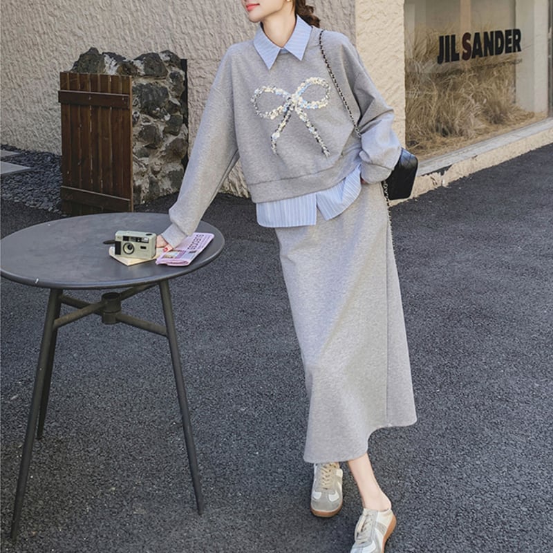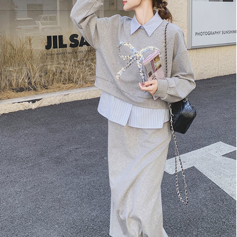 リボンモチーフトップス+インナーシャツ+スカート 3点セット 11147
