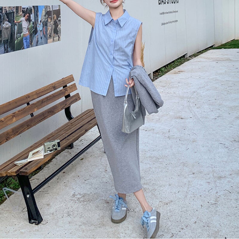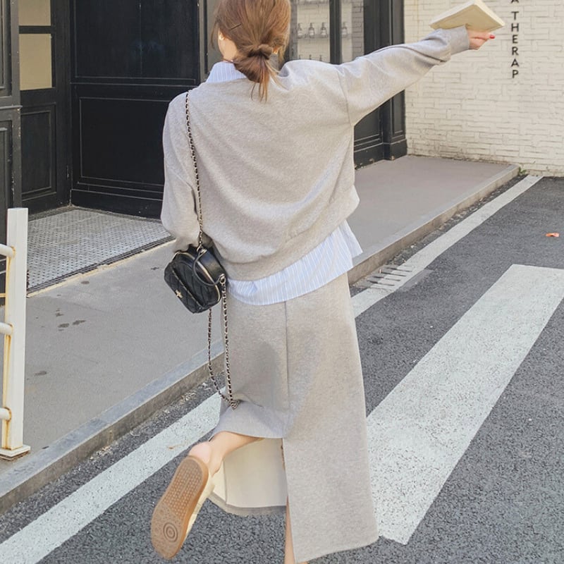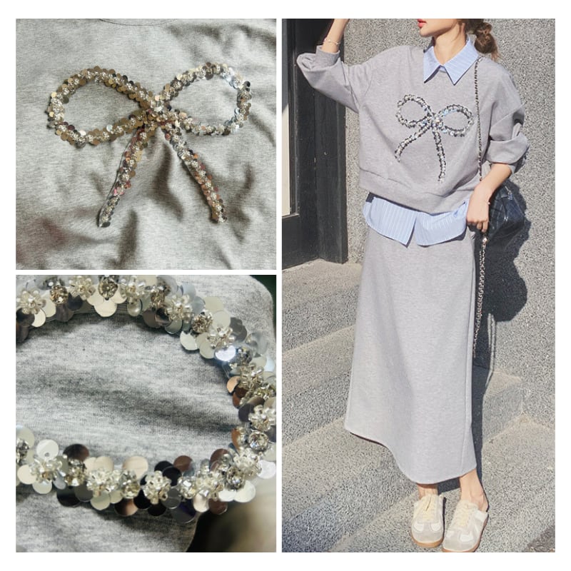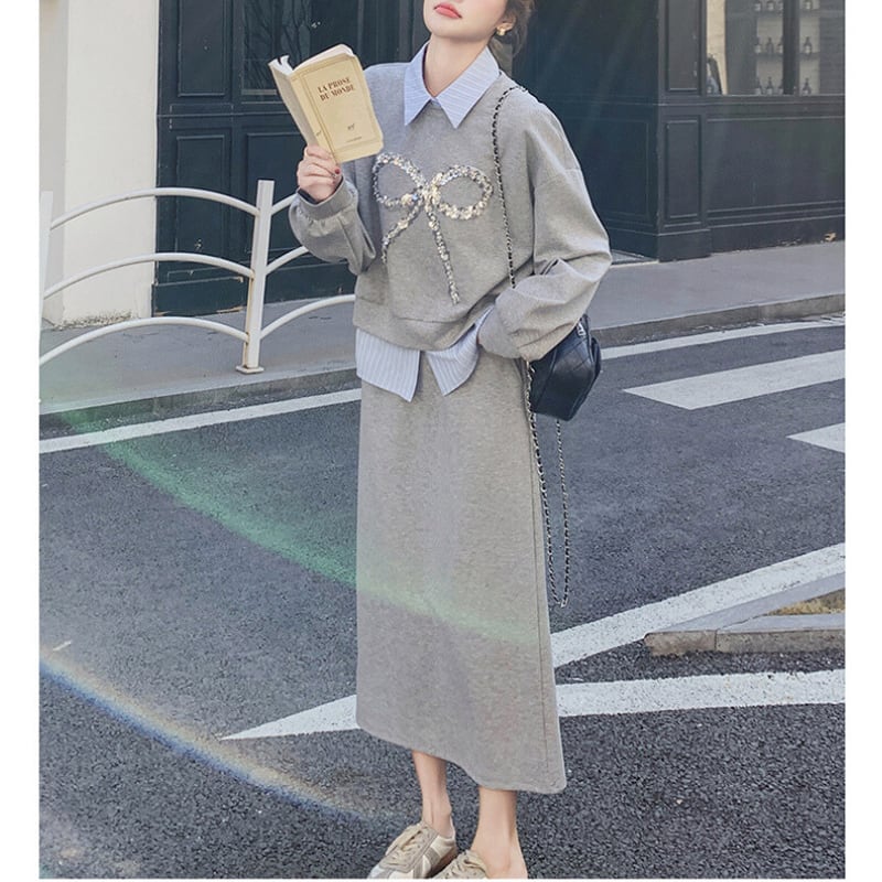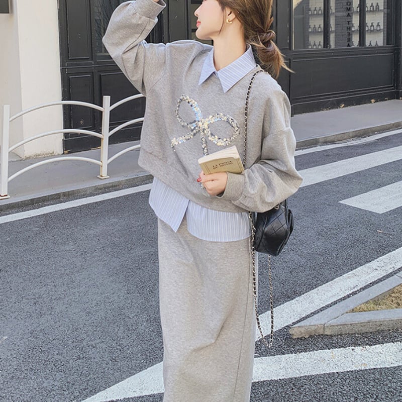 リボンモチーフトップス+インナーシャツ+スカート 3点セット 11147