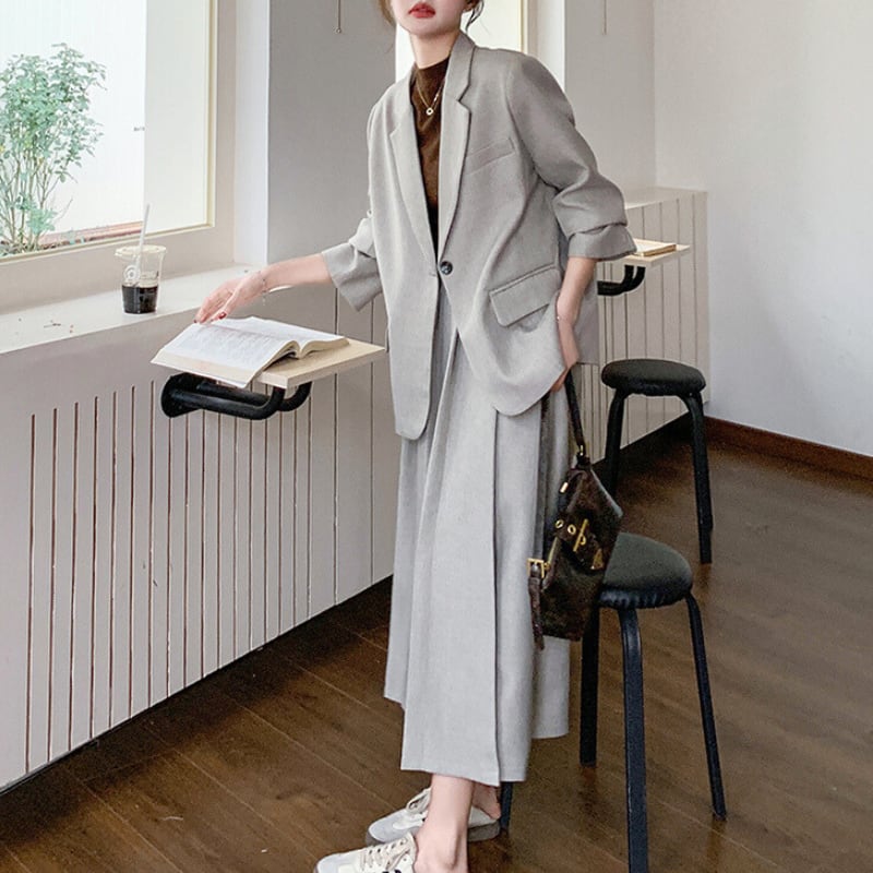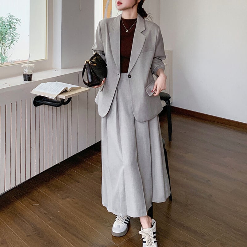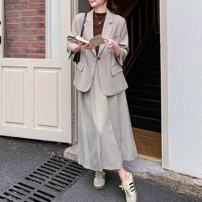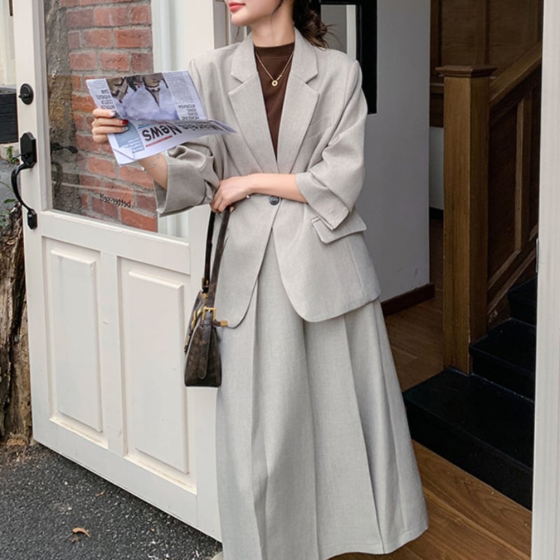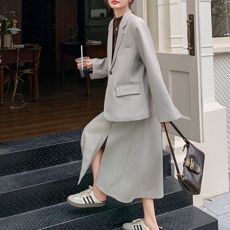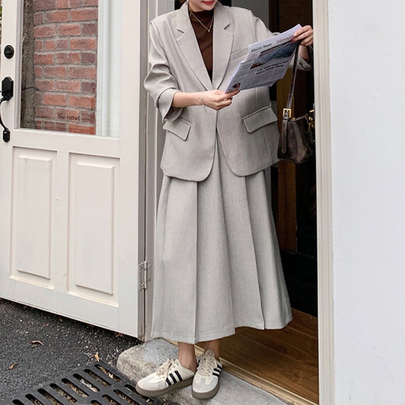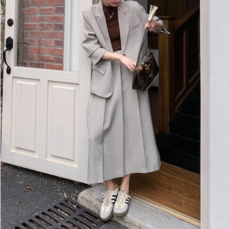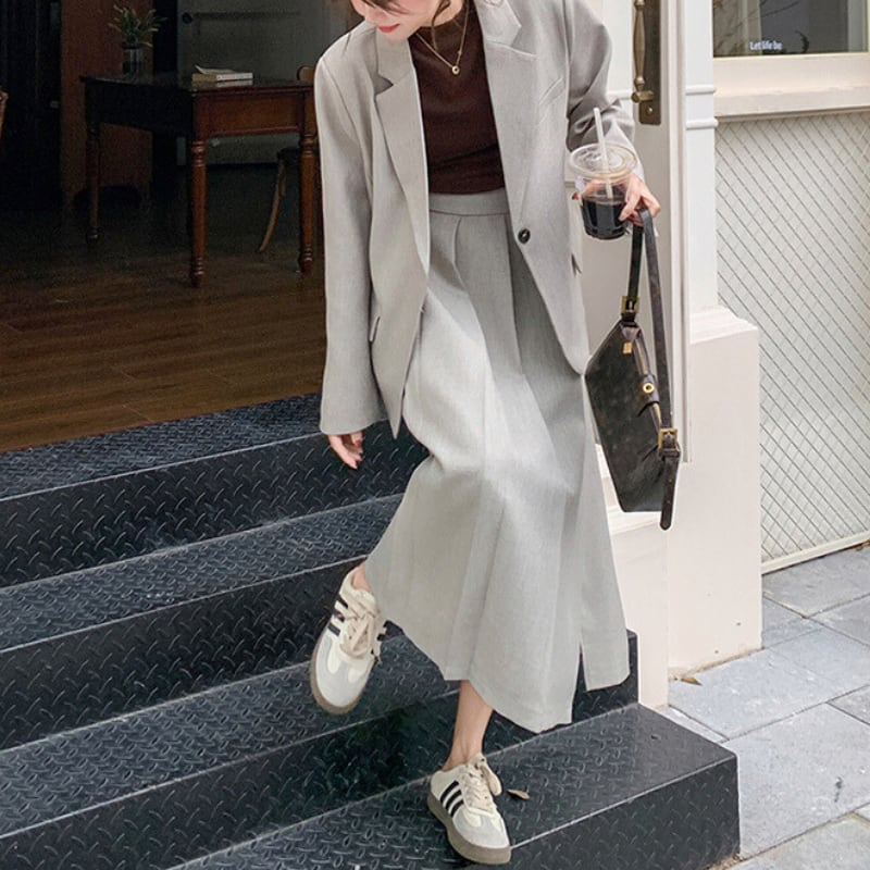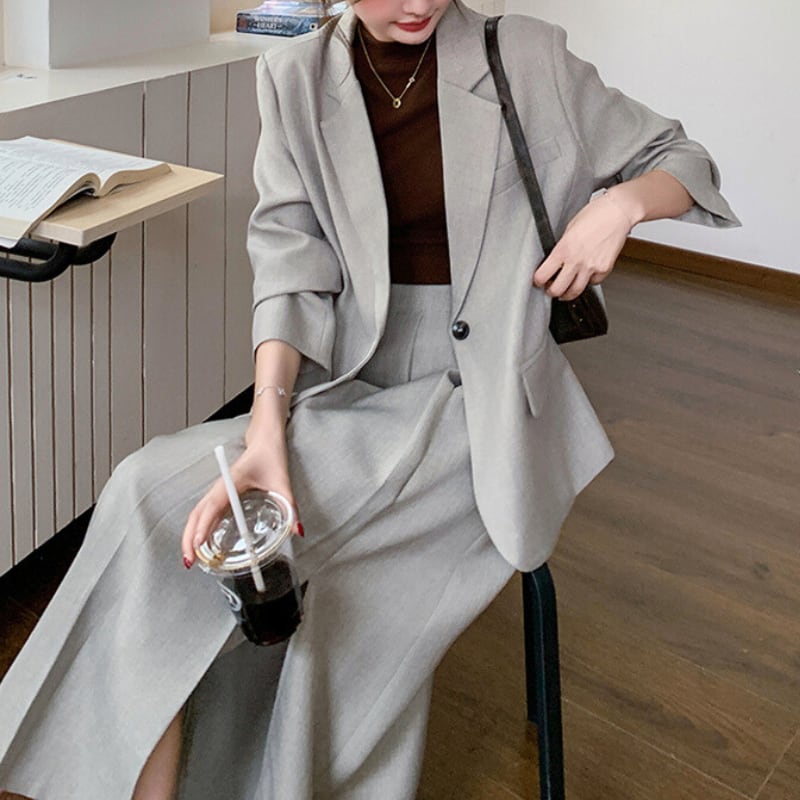 シングルブレストジャケットとスカートの