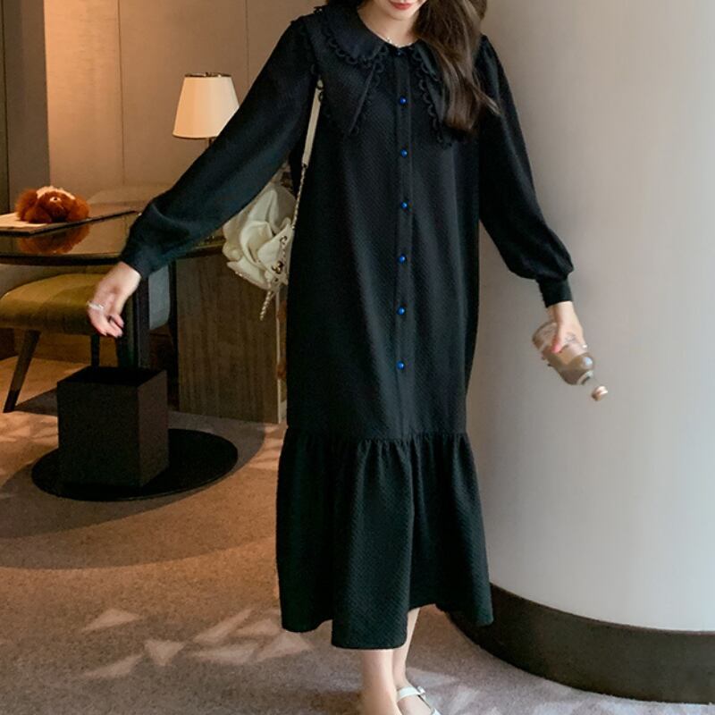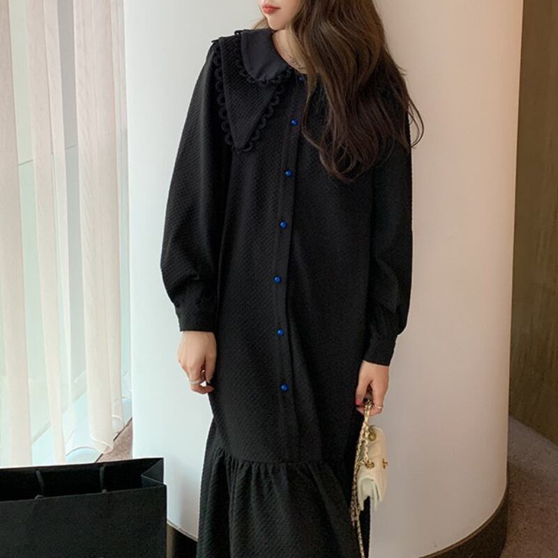 デザイン襟裾フリルシャツワンピース 11160