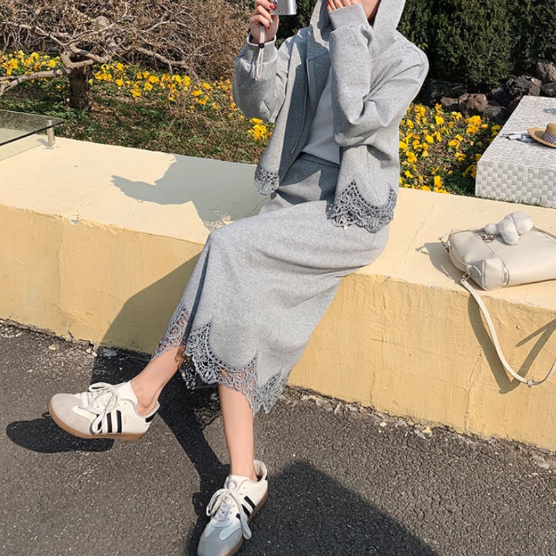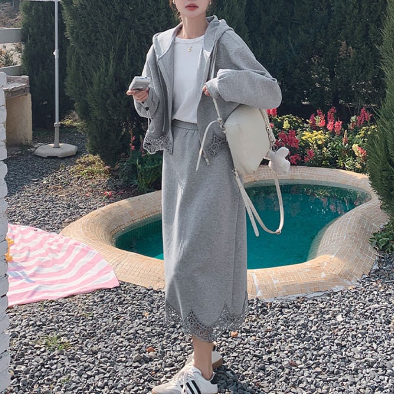 ジップアップレーストリムパーカー+スカートセット 11162