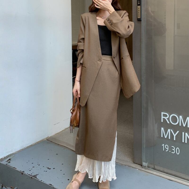 オーバーサイズジャケット+インナーレーススカート♢全2色 11163