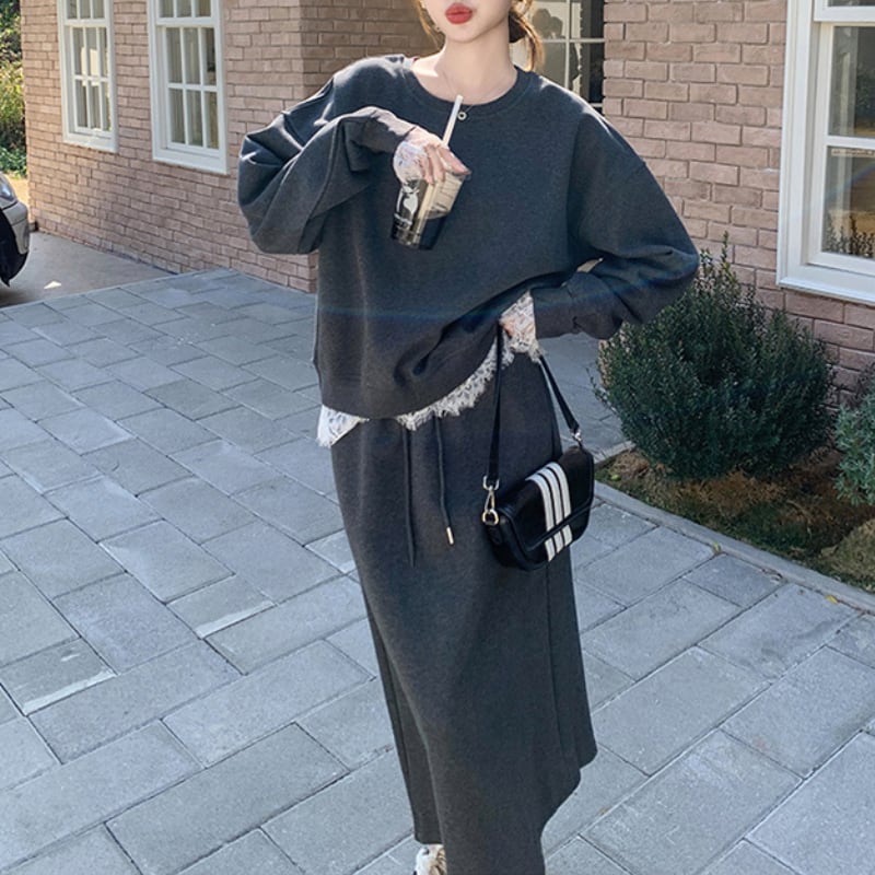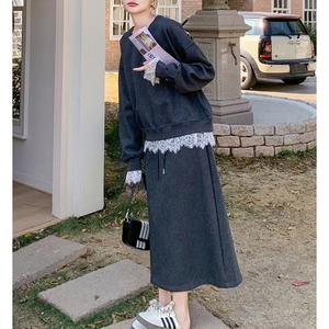 レース付きルーズサイズスウェット+スカートセット 11192