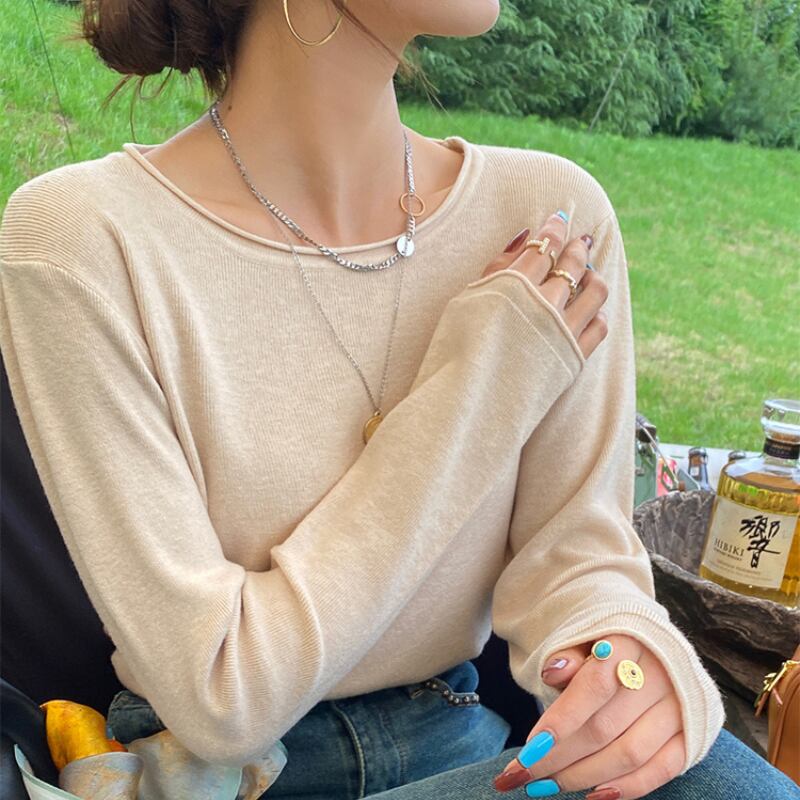 シンプルなラウンドネックで、着回し力抜群◎