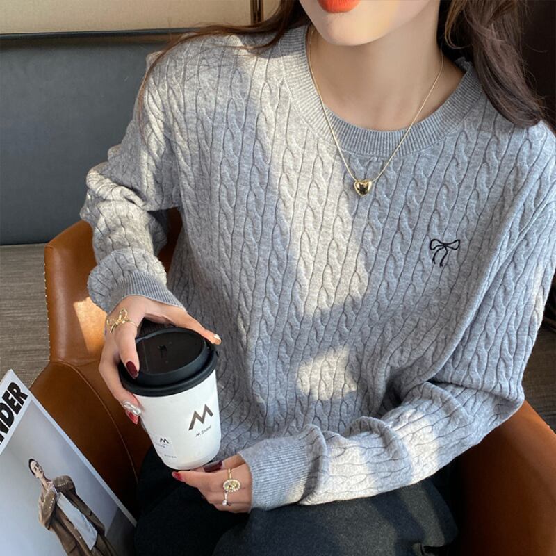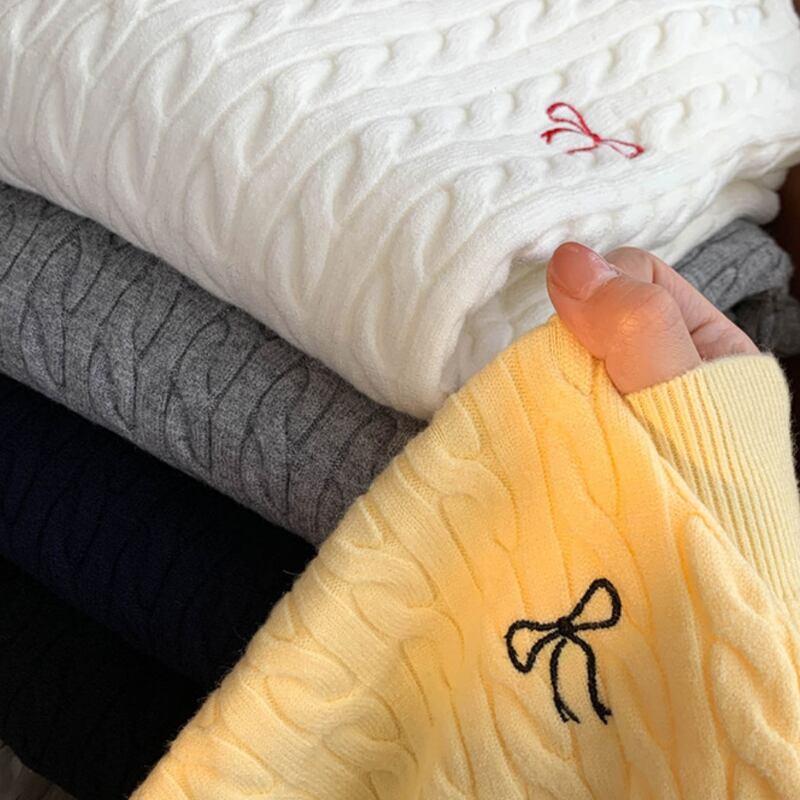 さりげないリボンの刺繍が大人可愛いセーター♡