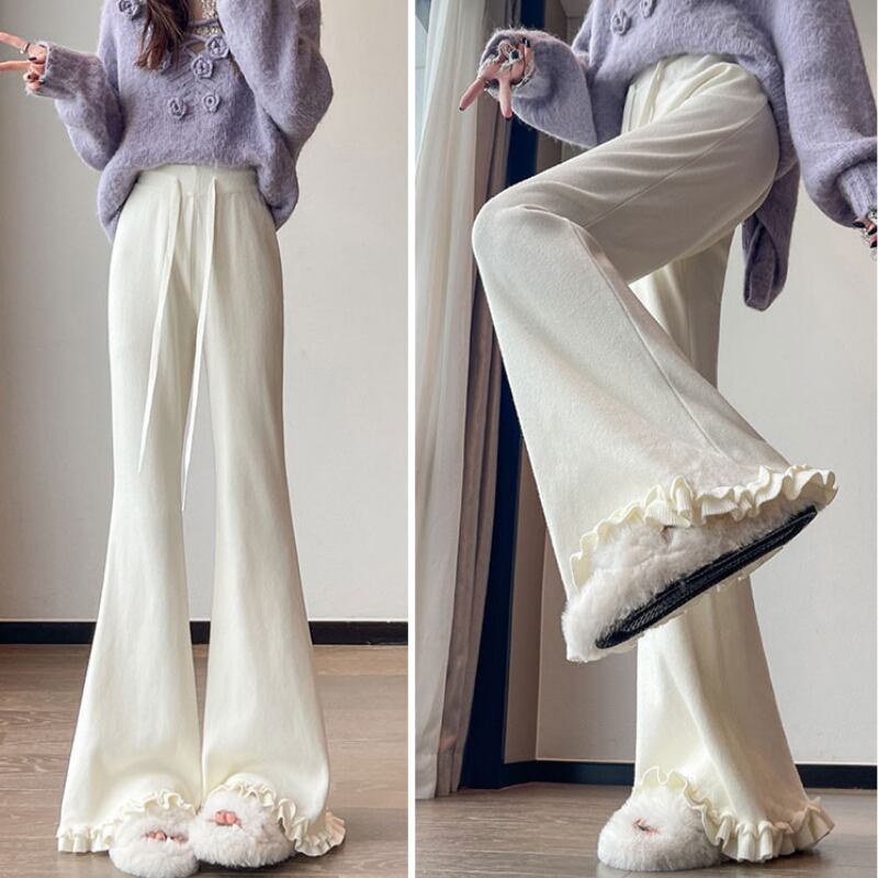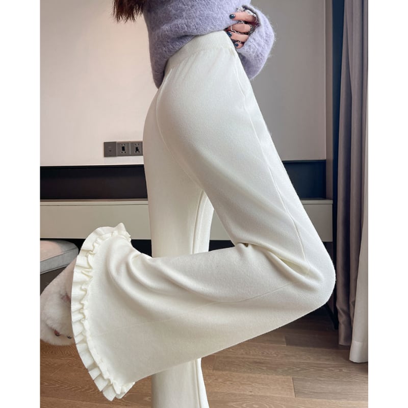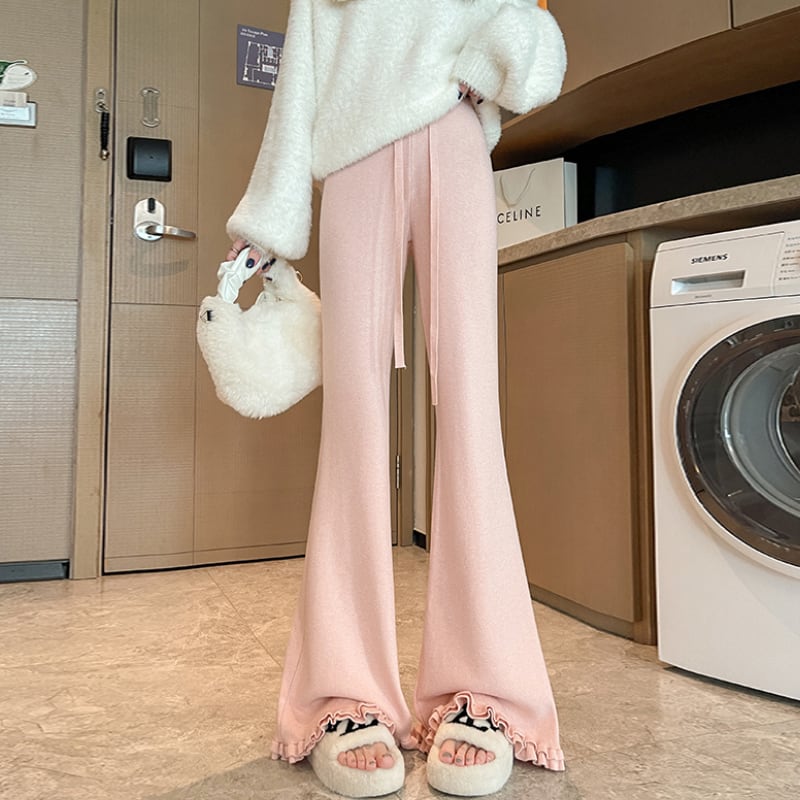 ドローストリングフレア フリル裾パンツ♢全4色 11207