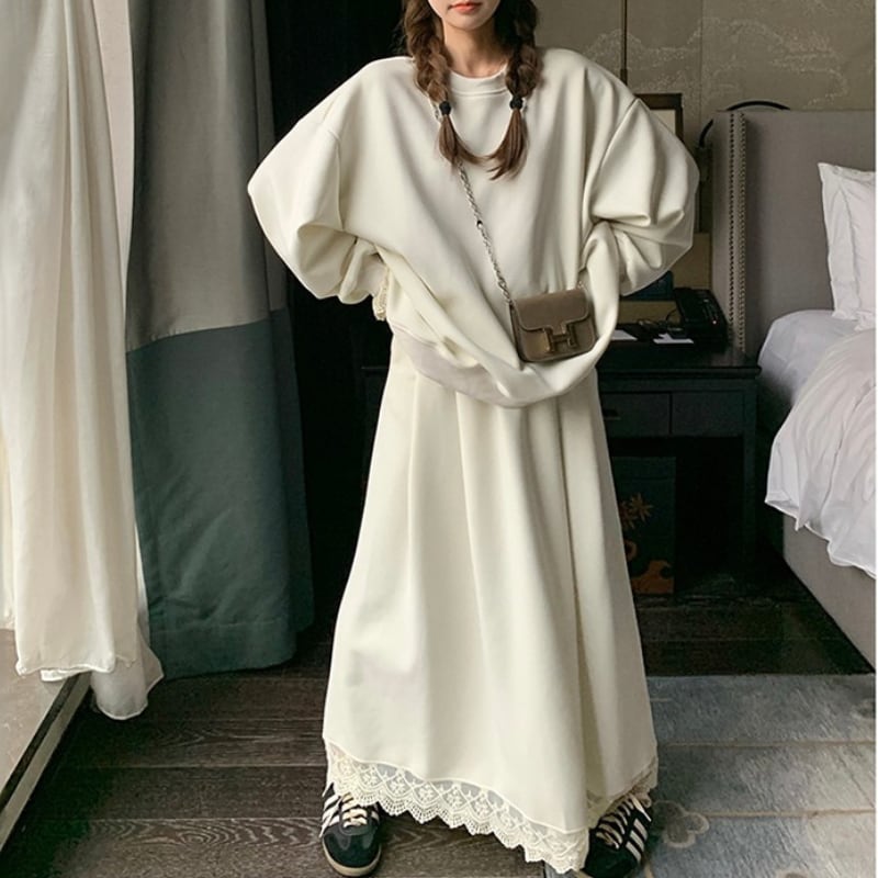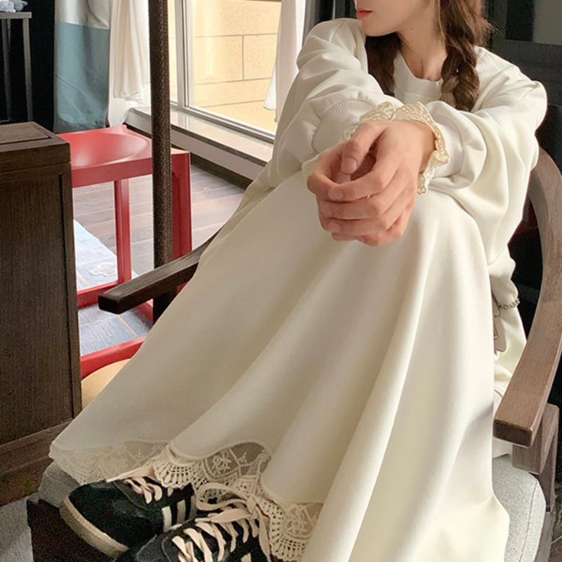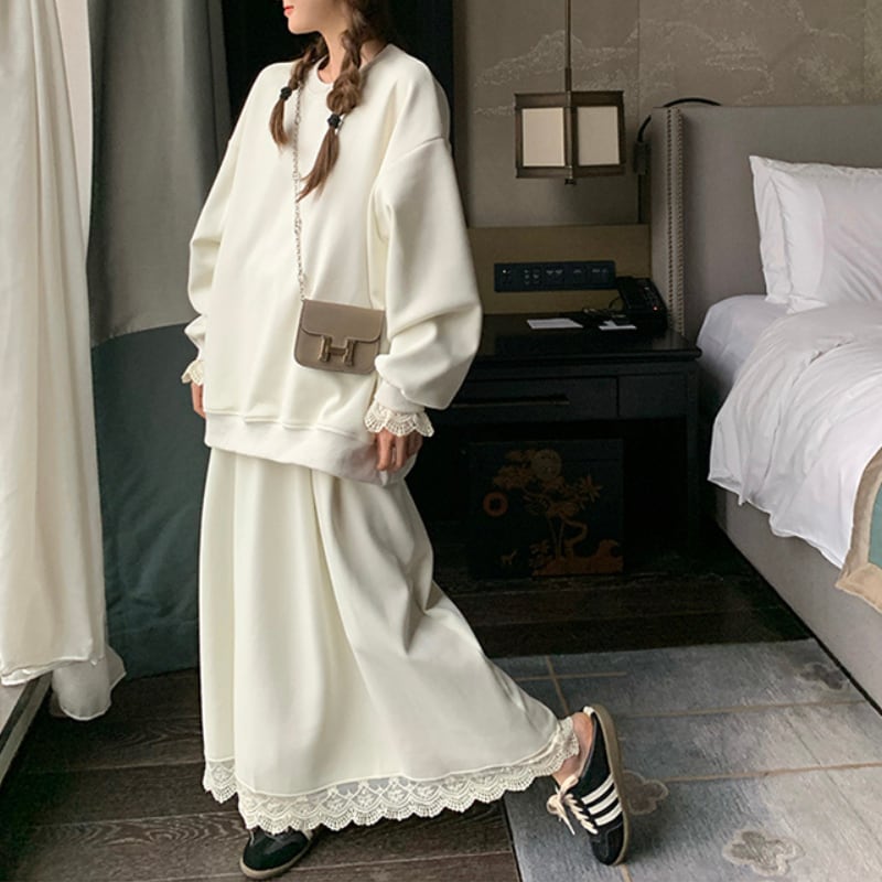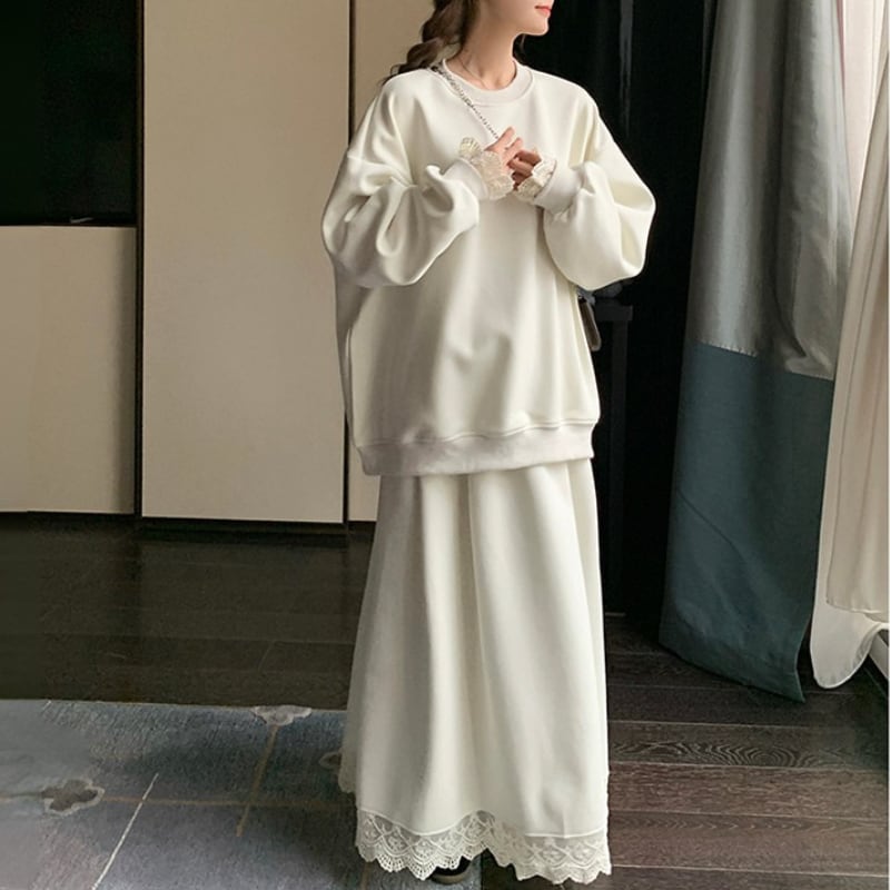 レースデザインオーバーサイズスウェットセット 11213