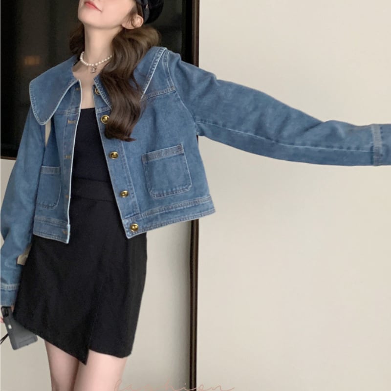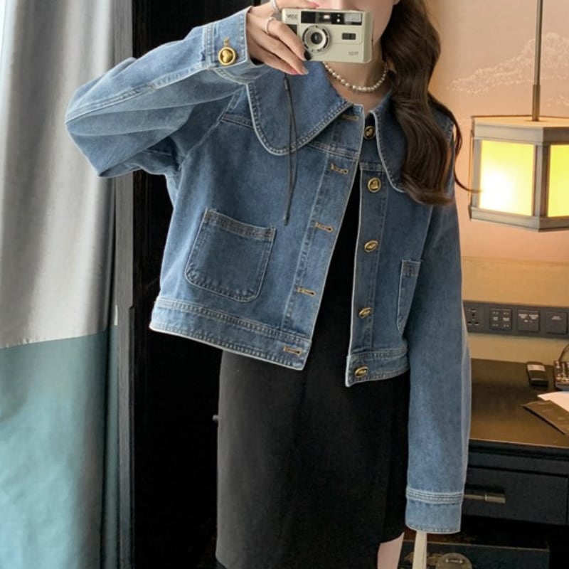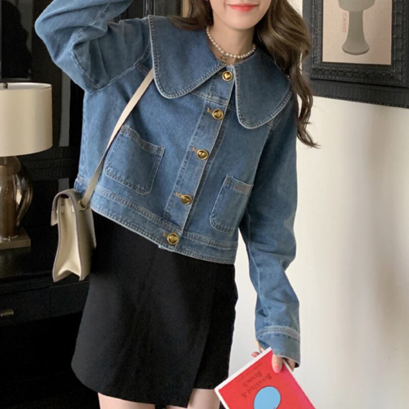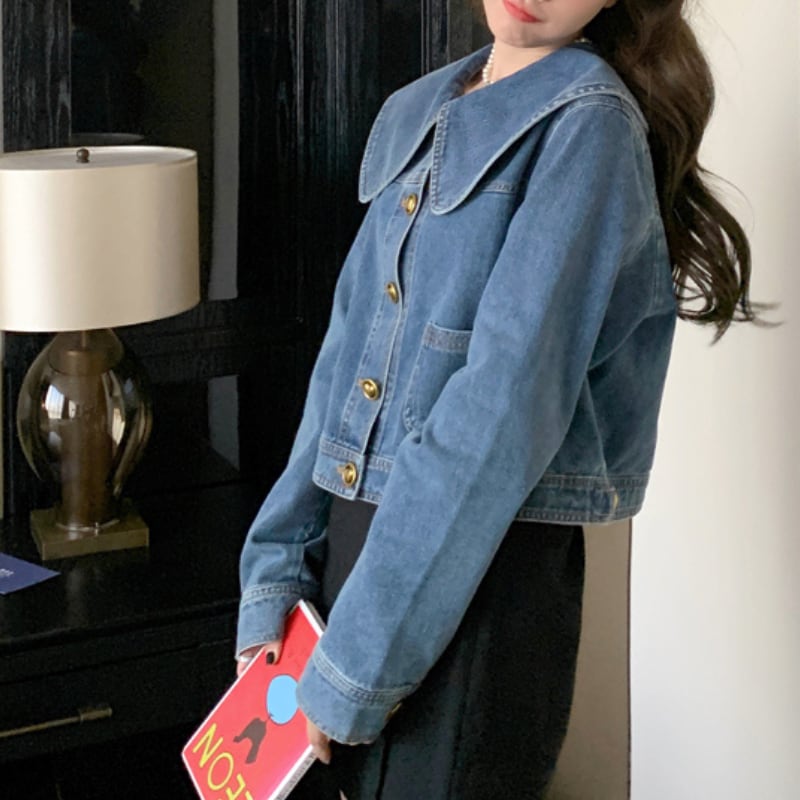 丸襟が目を引く、ショート丈デニムジャケット♡