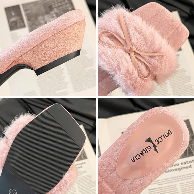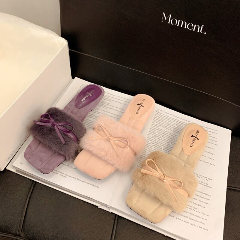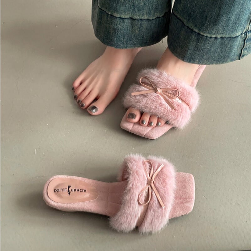 フラットサンダル♡ファーとリボンの組み合わせが、