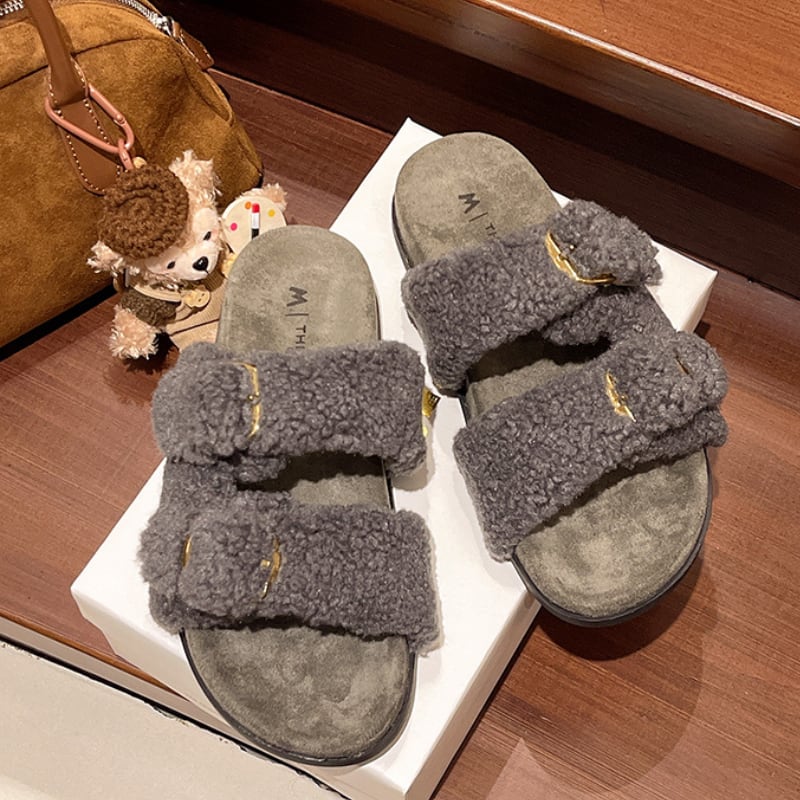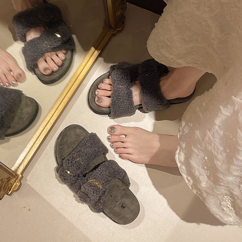 モコモコ素材であたたかみのあるフラットサンダル♡