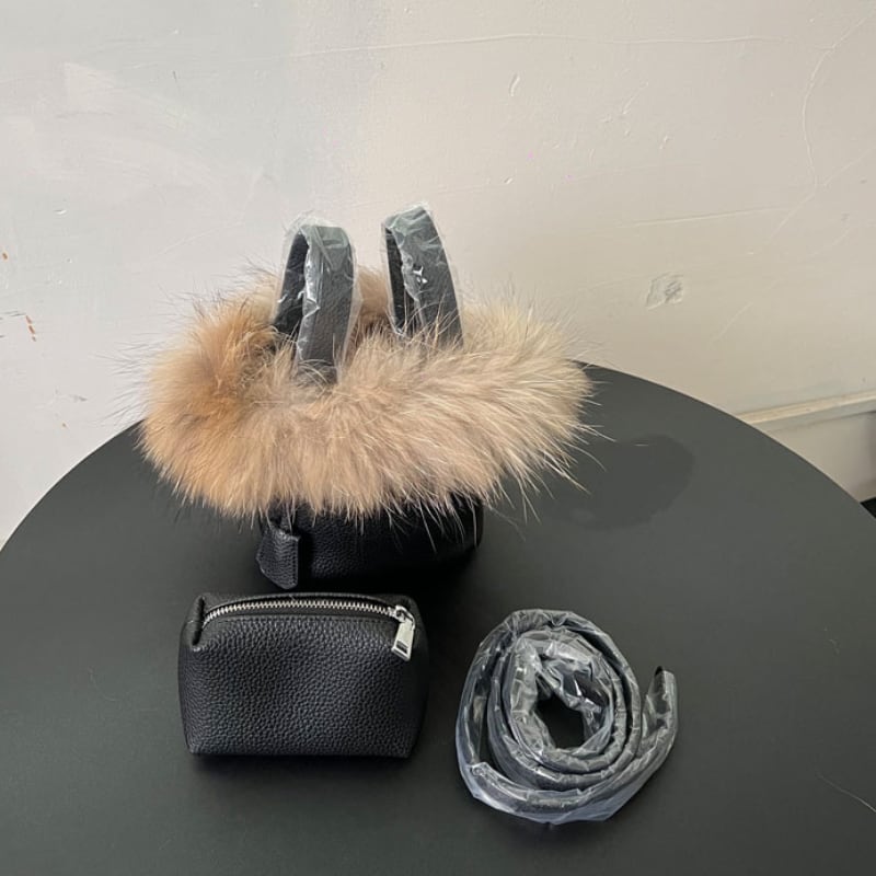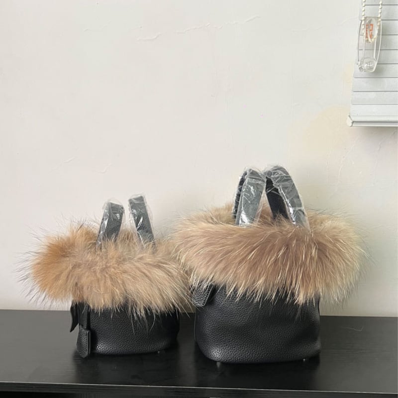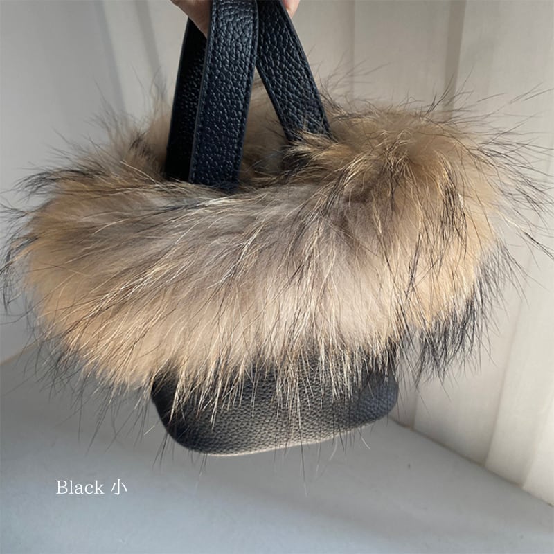 ファー付きバケツ型レザー風 ハンドバッグ♢全2サイズ 12366