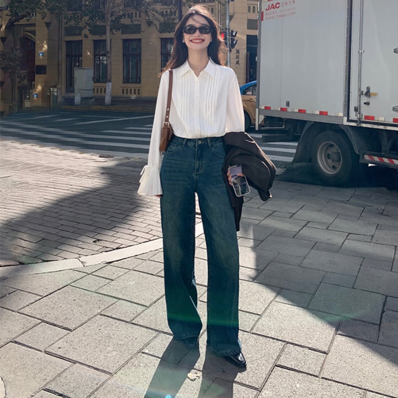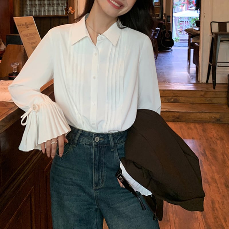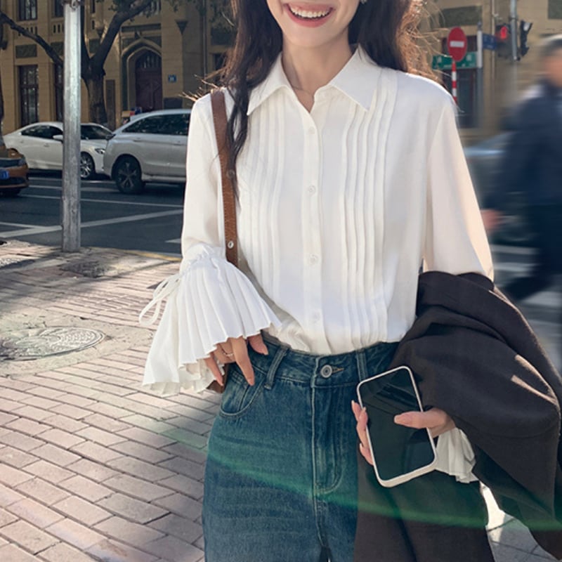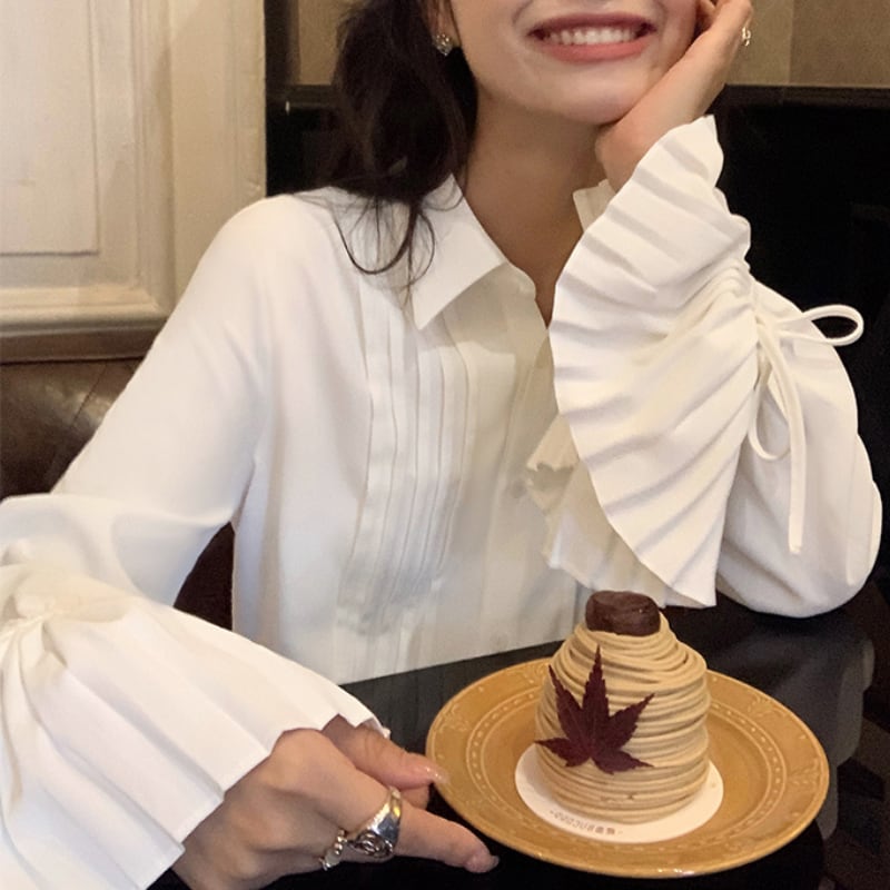 リボン袖プリーツ デザインシャツ 11236