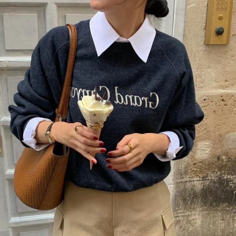 ロゴプリントクルーネックリブスウェット♢全4色 11245