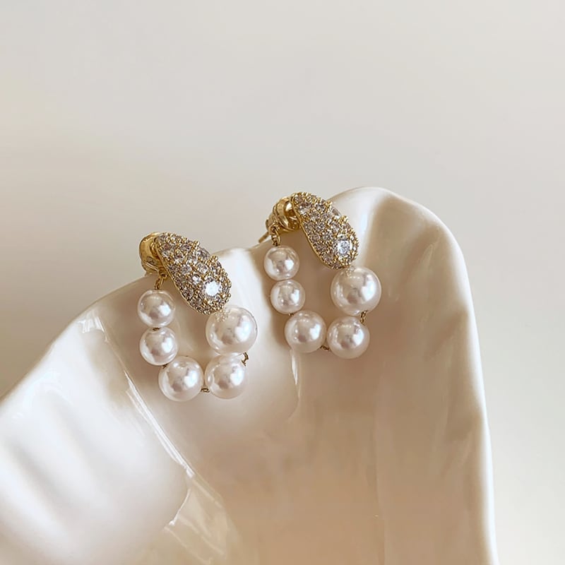 耳元で上品に輝くパールが、女性らしさを引き立てます。