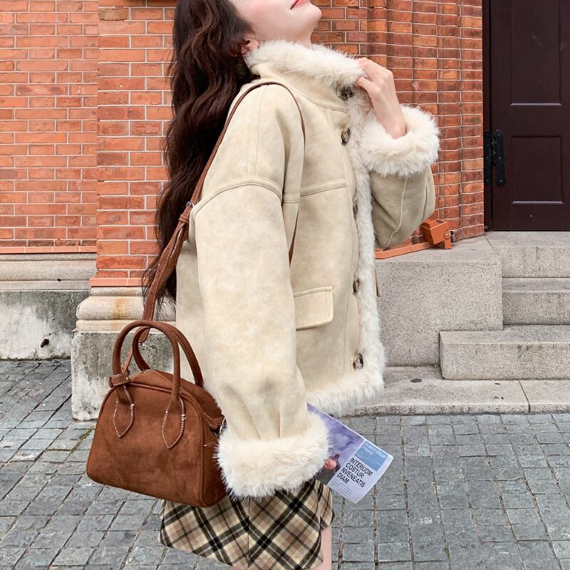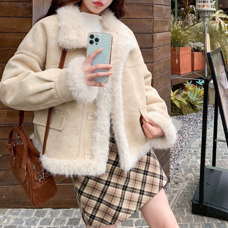 ふわふわの縁取りが可愛いジャケット♡