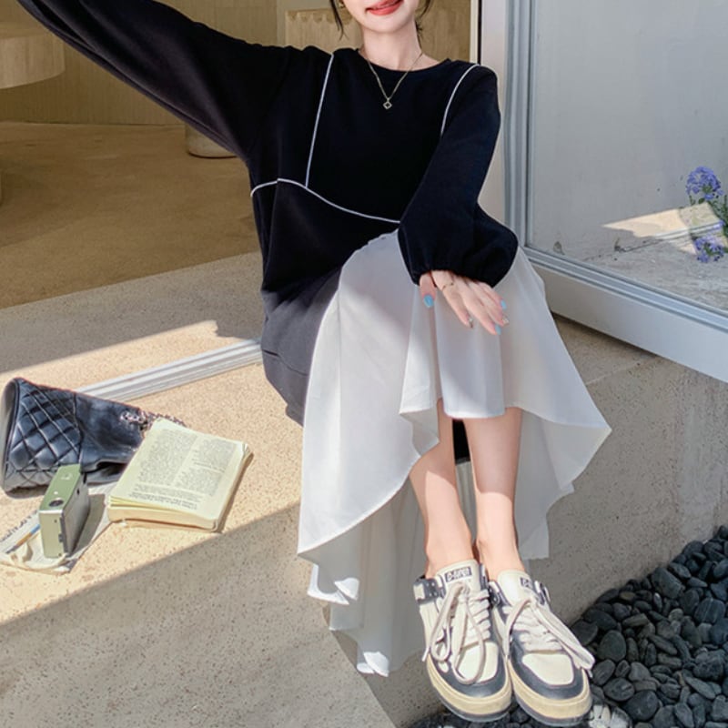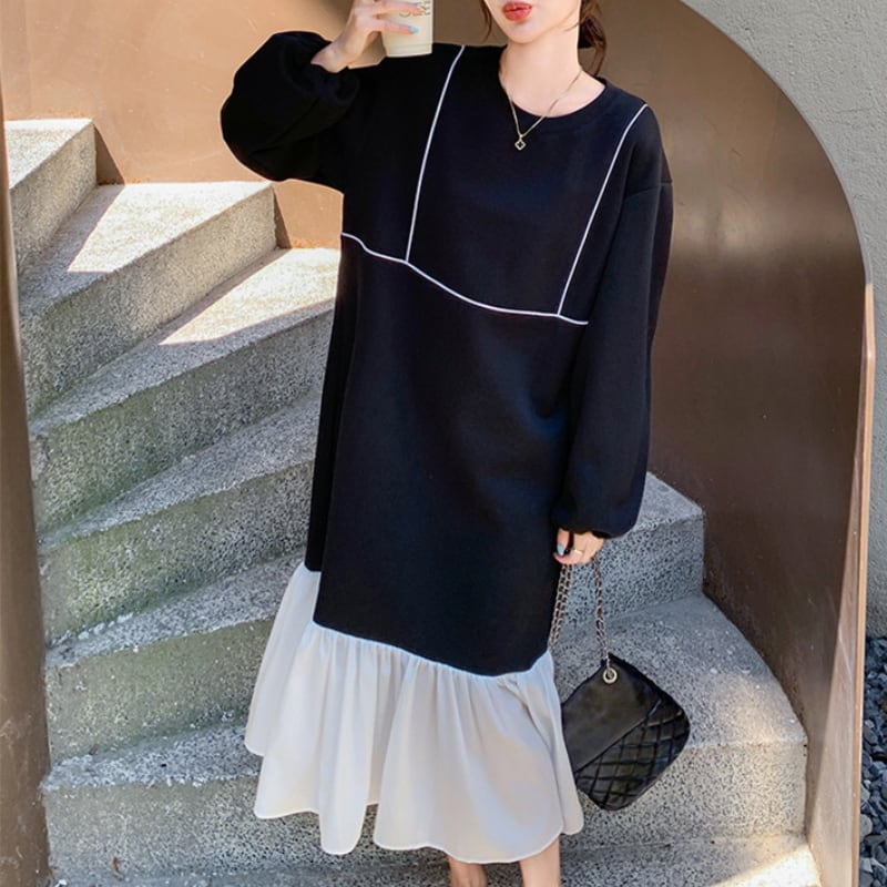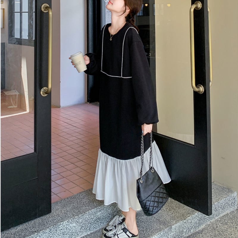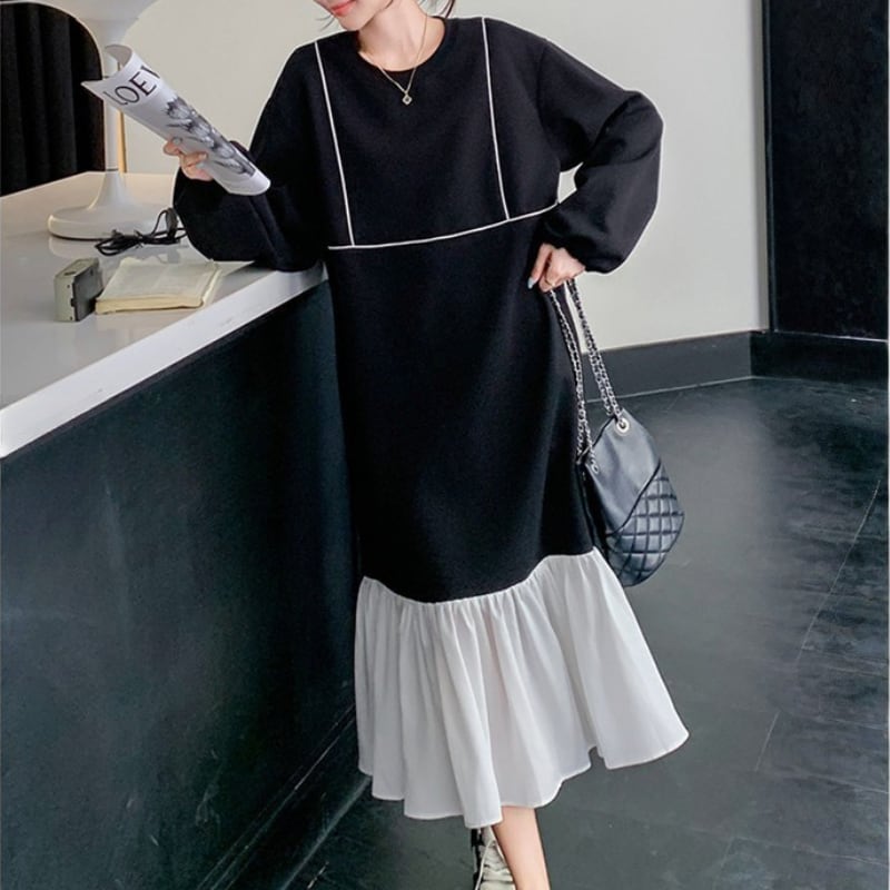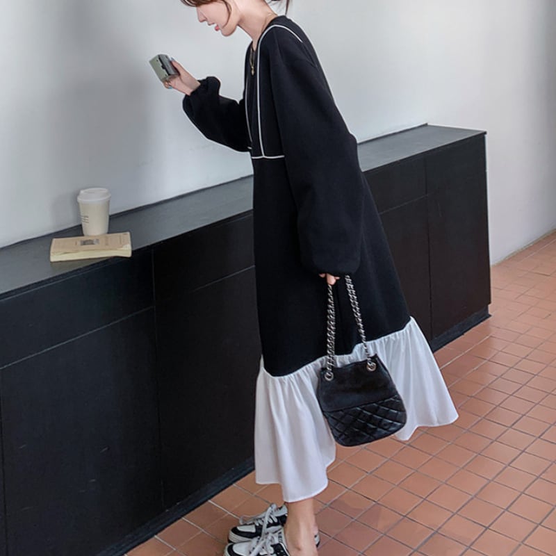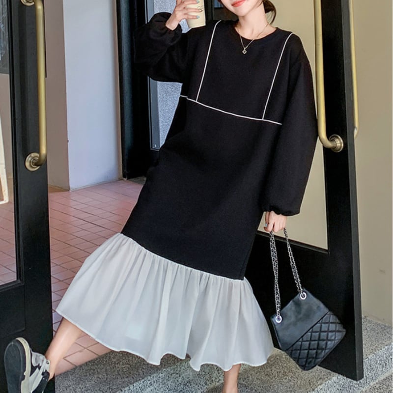 裾フリルミモレ丈ワンピース 11274