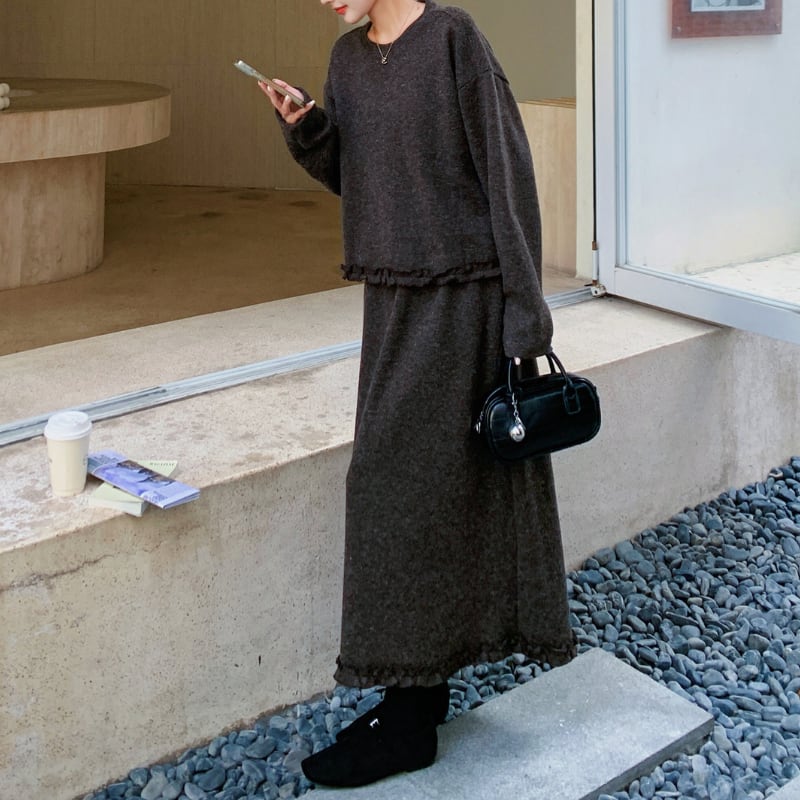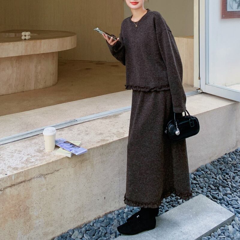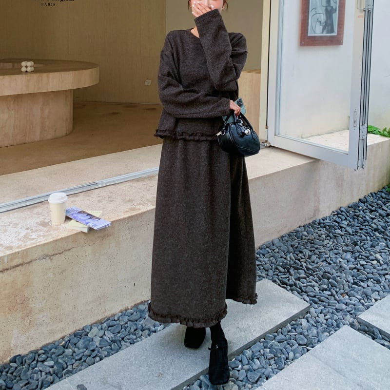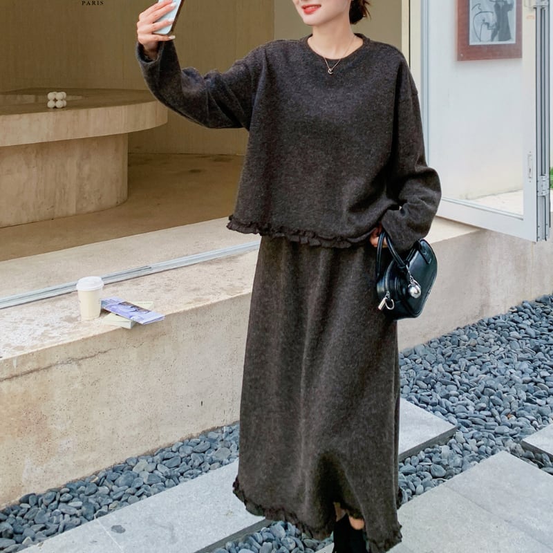 ポイントフリルトップス+スカートセット 11288