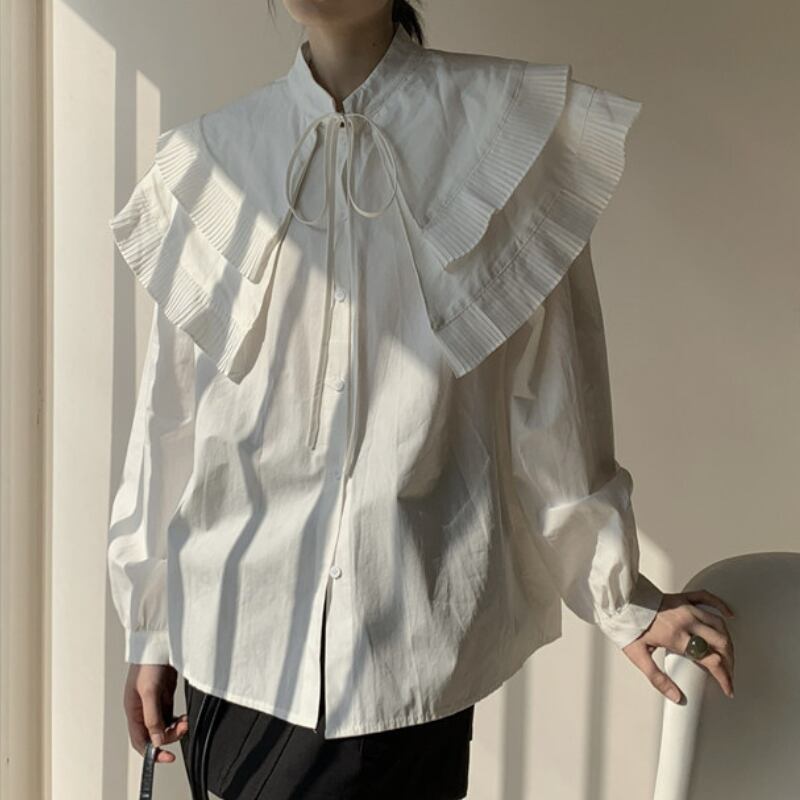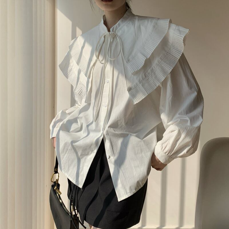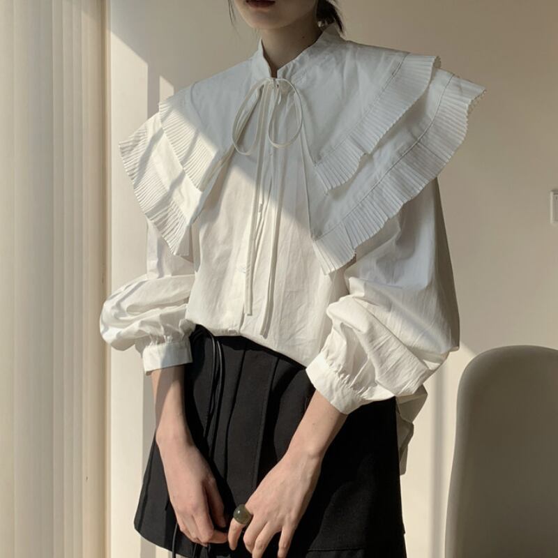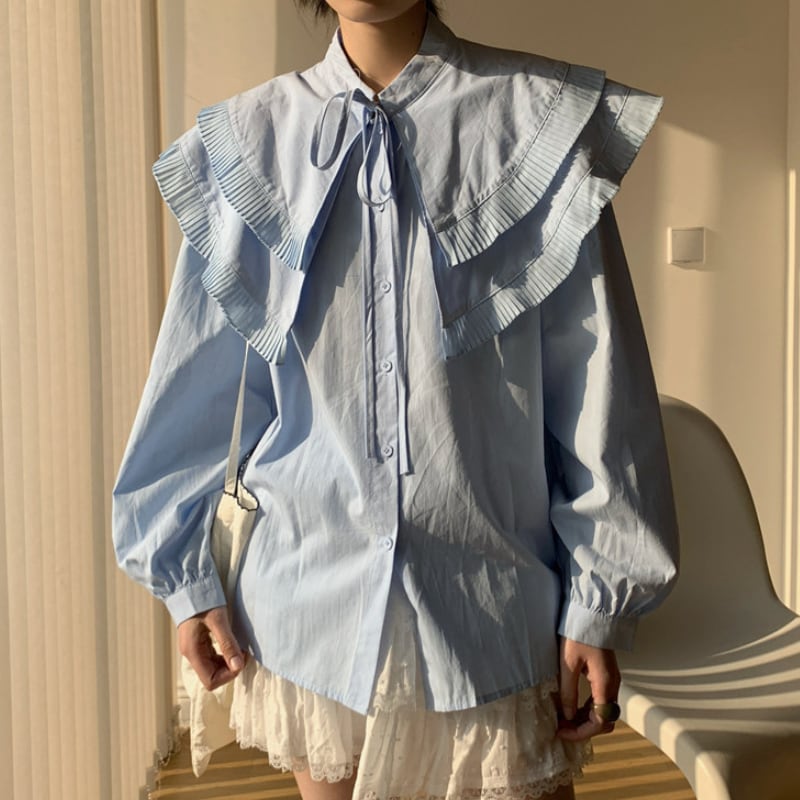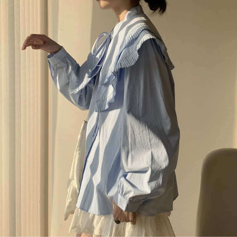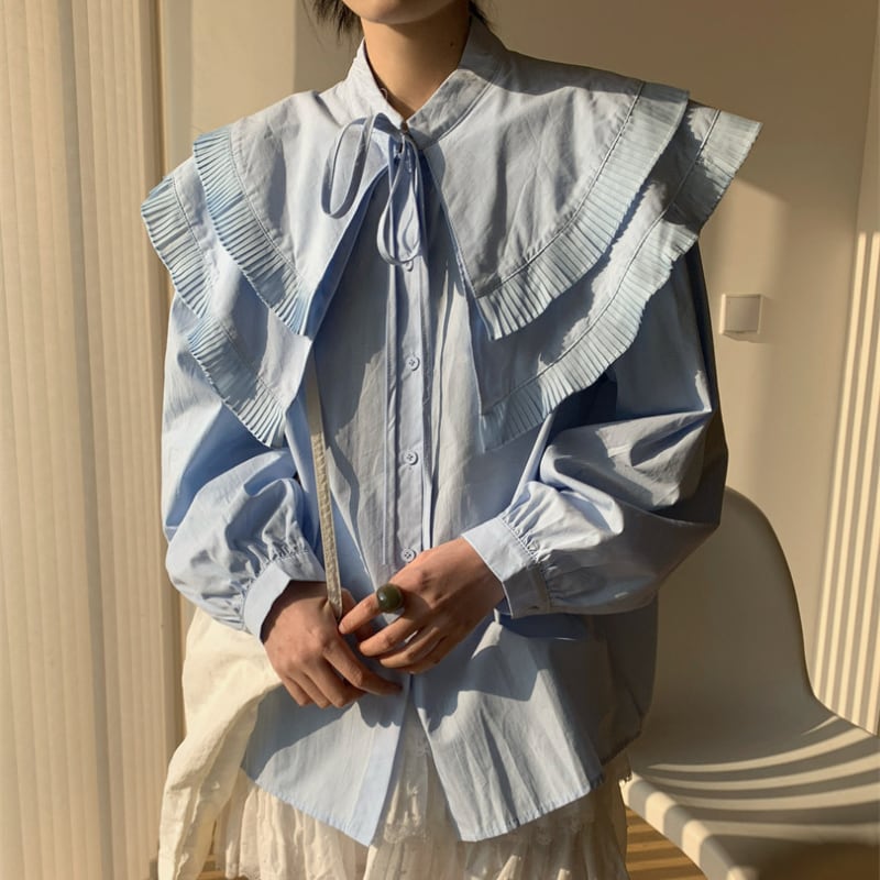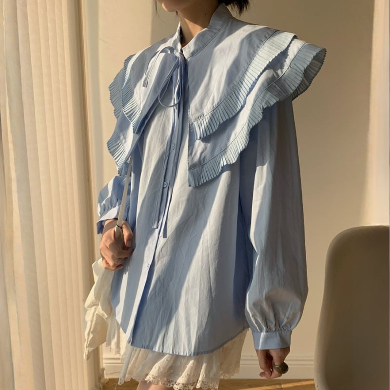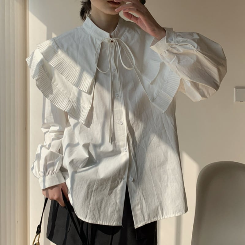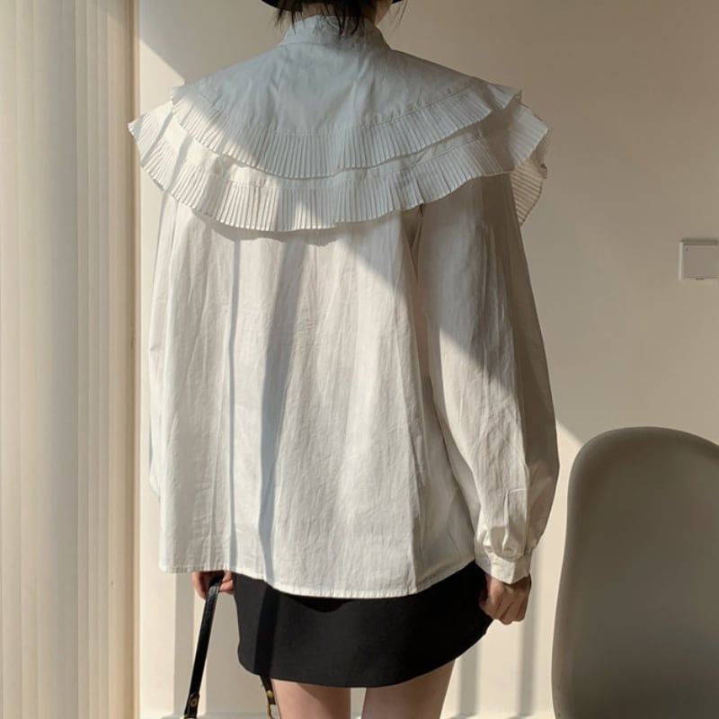 ダブルレイヤープリーツカラーシャツ♢全2色 13010