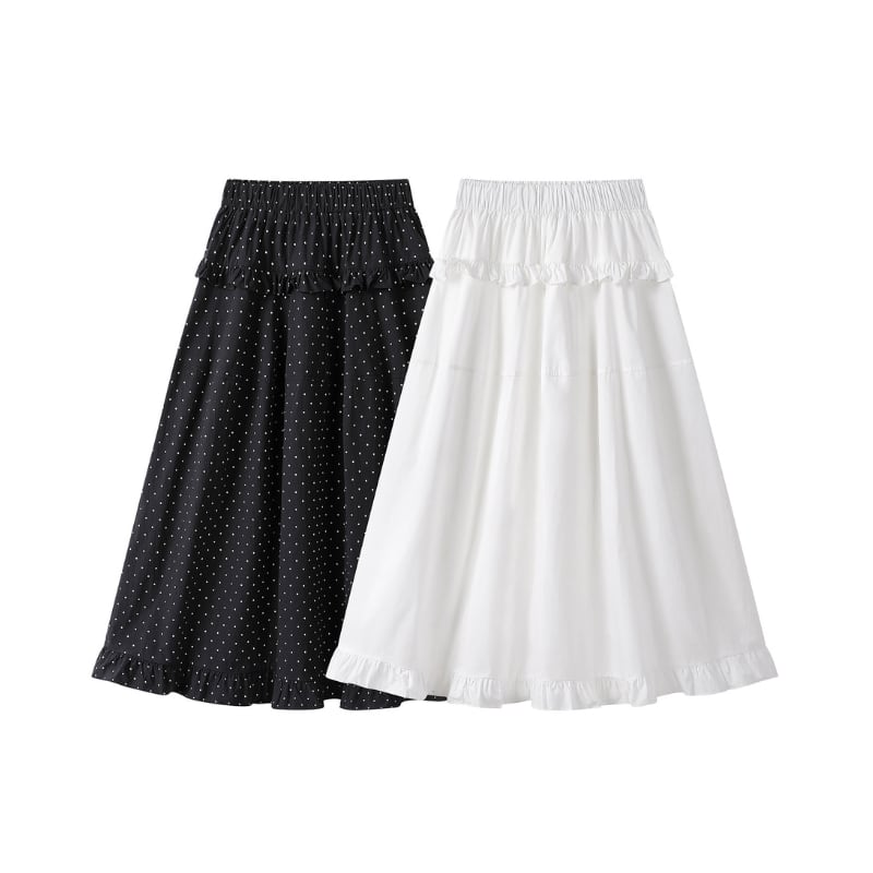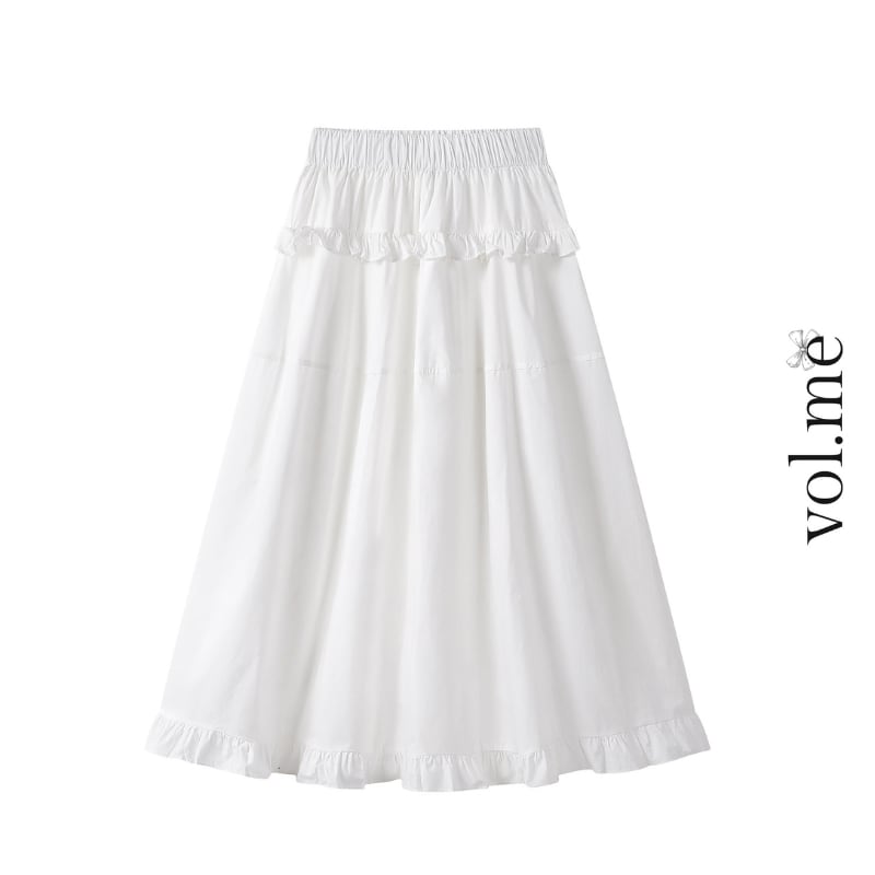 フリルウエストゴムロングスカート♢全2色 14000