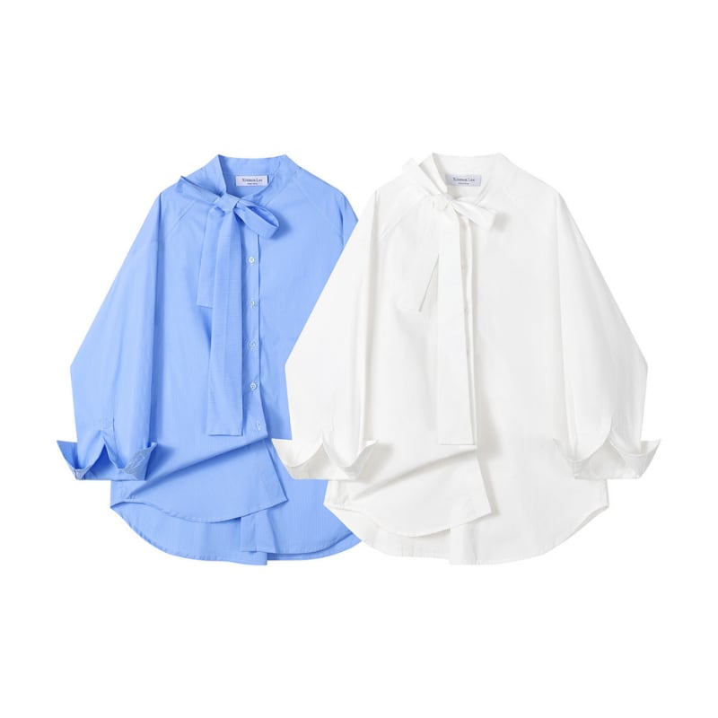 ボウタイドロップショルダーシャツ♢全2色 13017