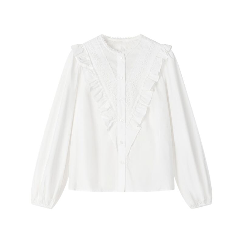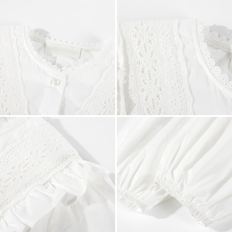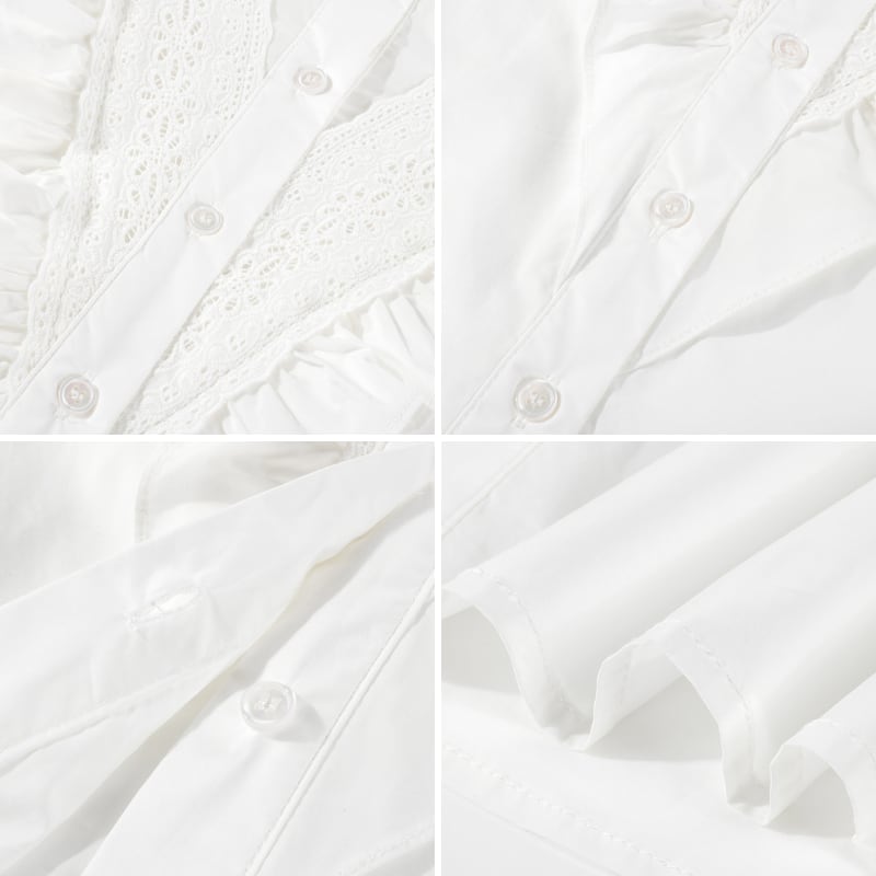 Vフリルレースデザインパフスリーブシャツ 13019