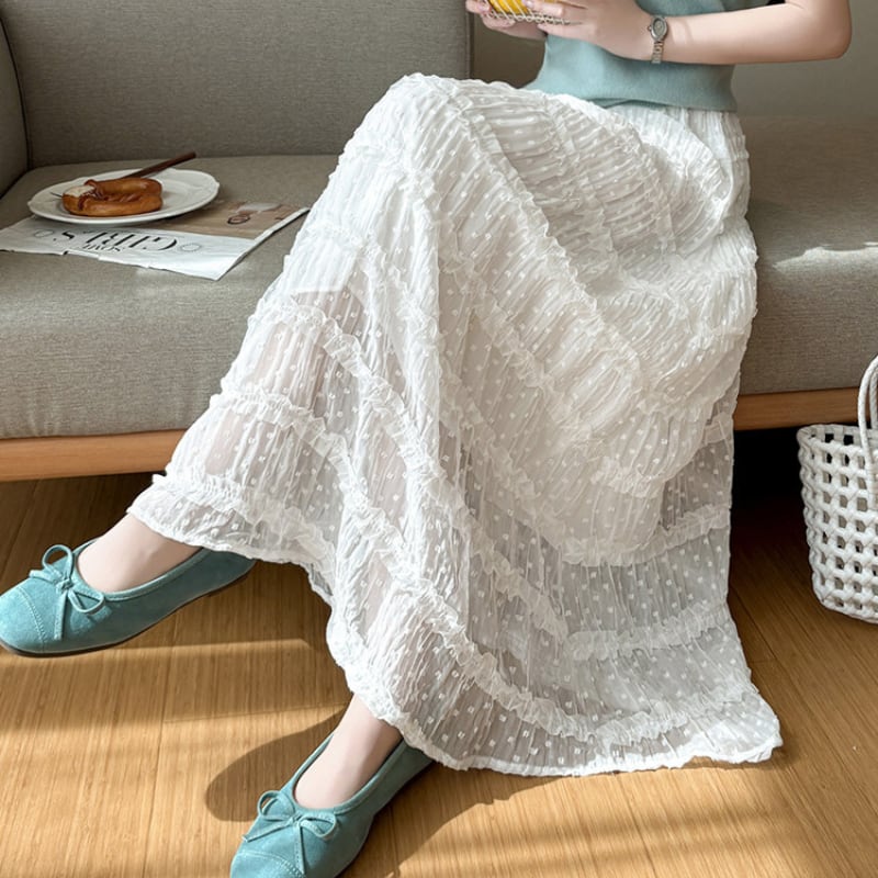 ギャザープリーツドットスカート♢全3色 14008