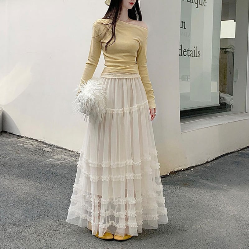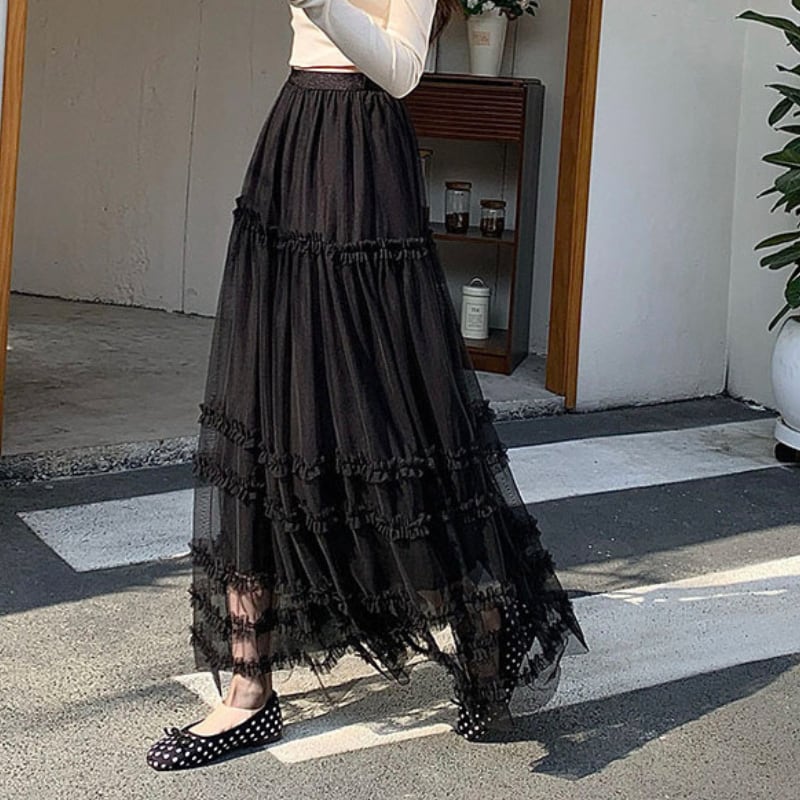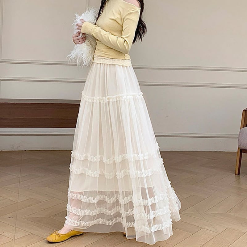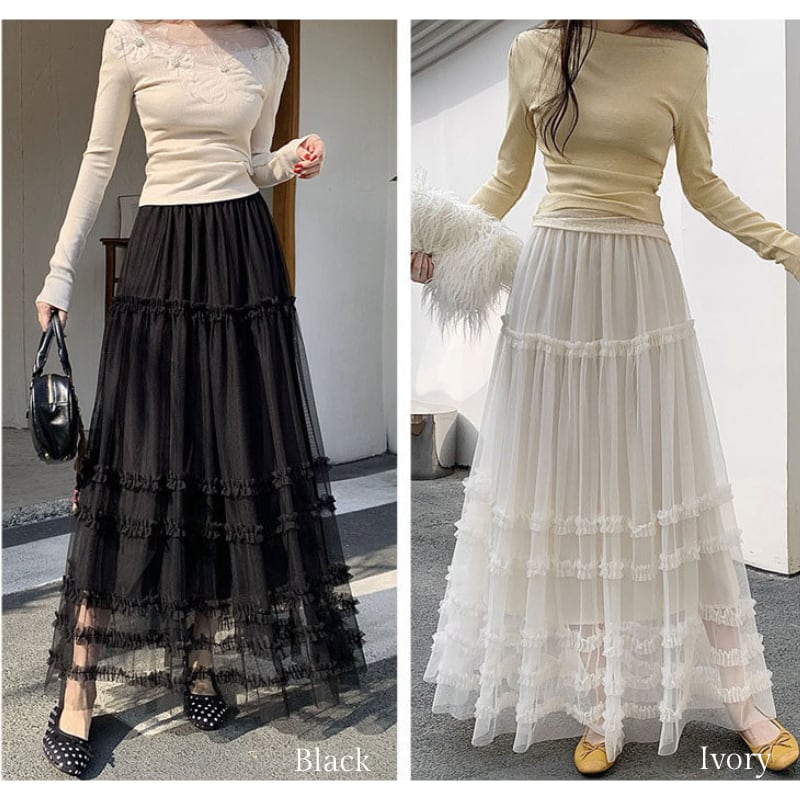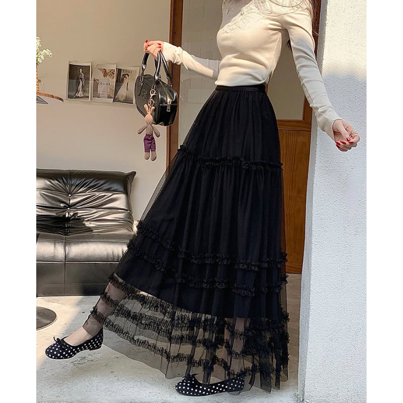 ハイウエストフリルAラインスカート♢全2色 14014