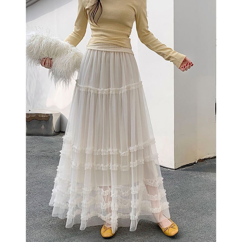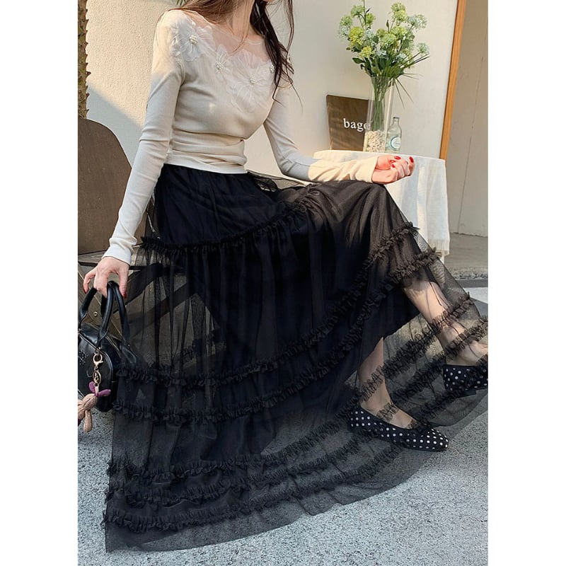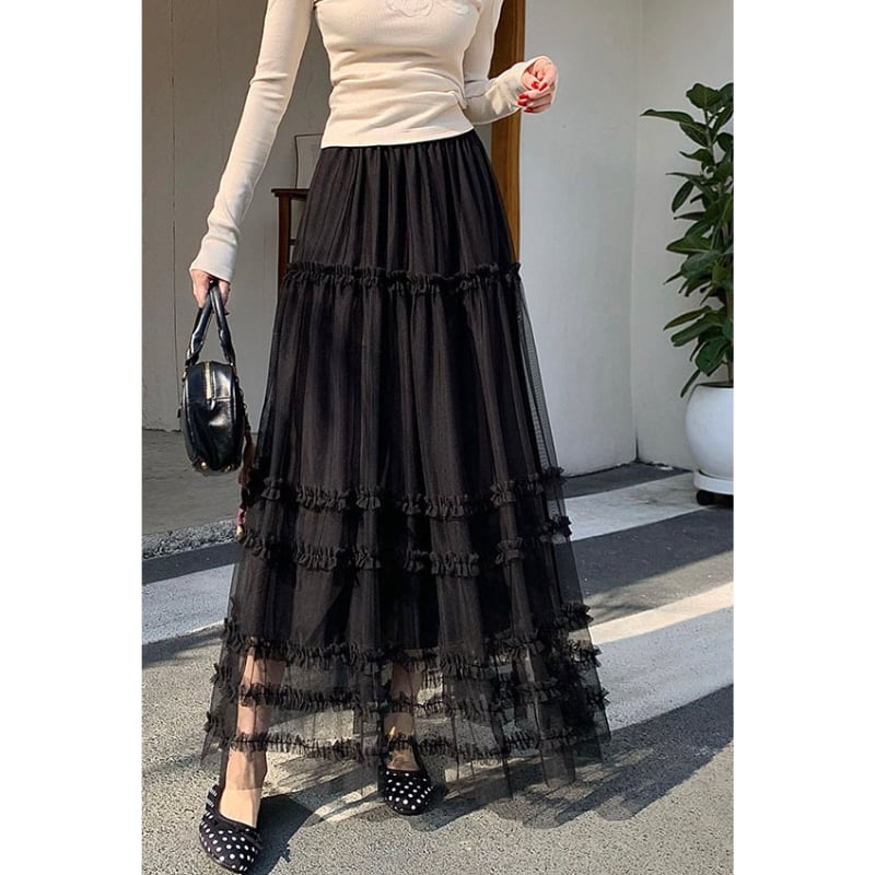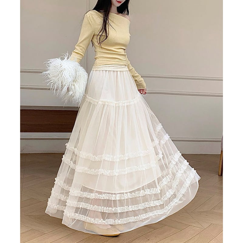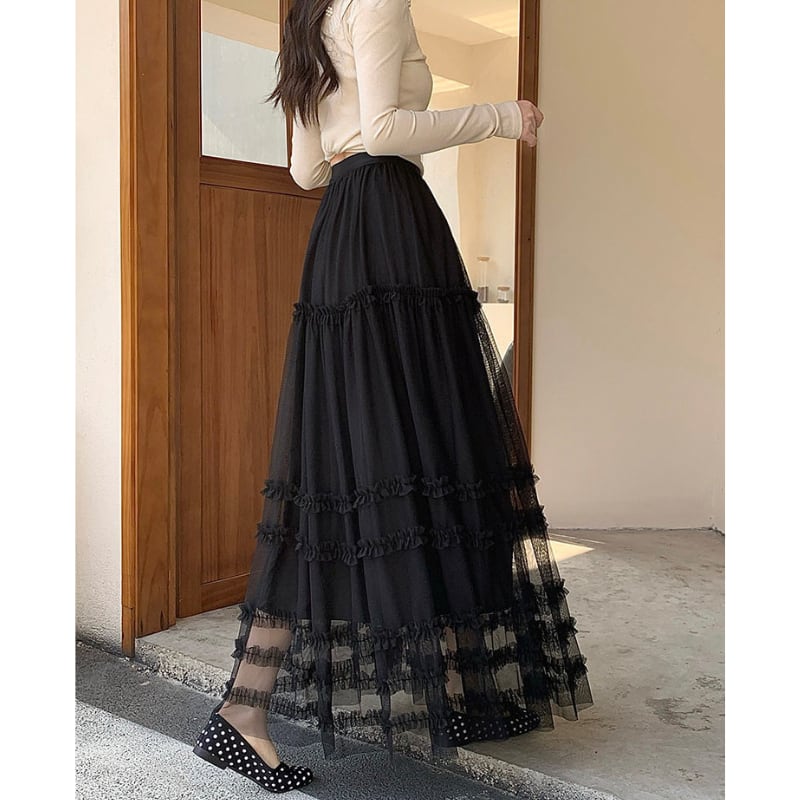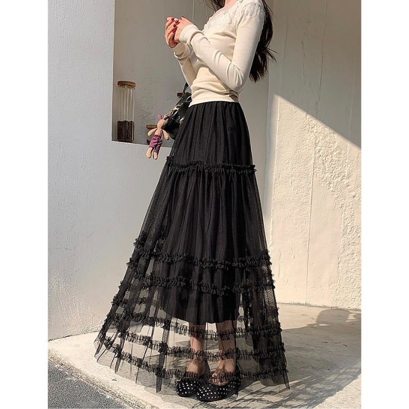 ハイウエストフリルAラインスカート♢全2色 14014