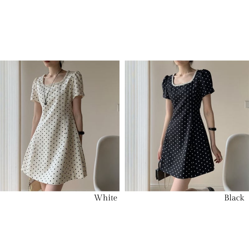 スクエアネックビーズ付きAラインワンピース♢全2色 11301