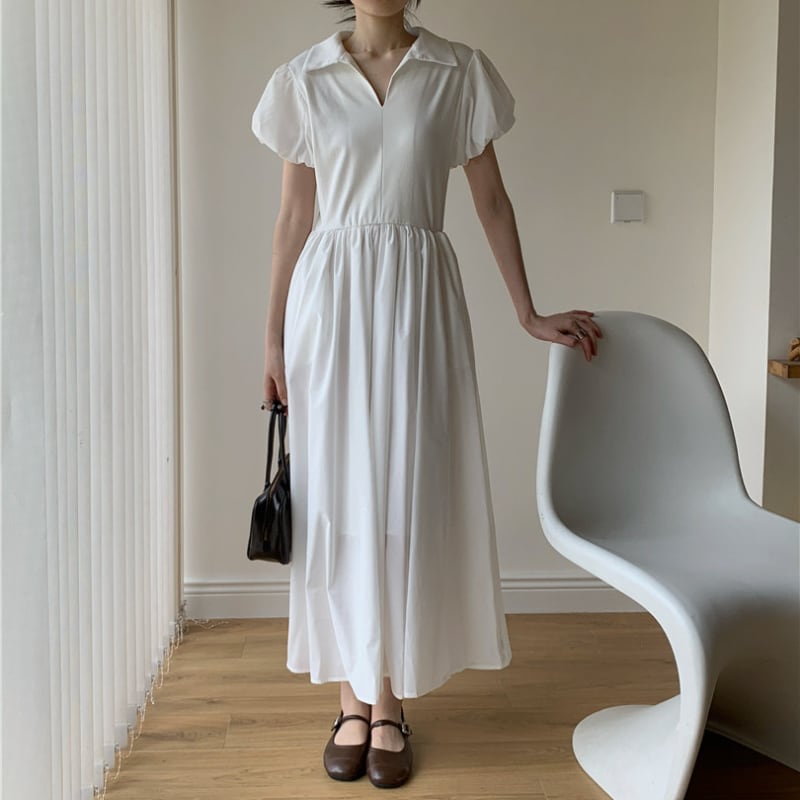 Vネックチューリップスリーブベルト付きワンピース♢全2色 11304