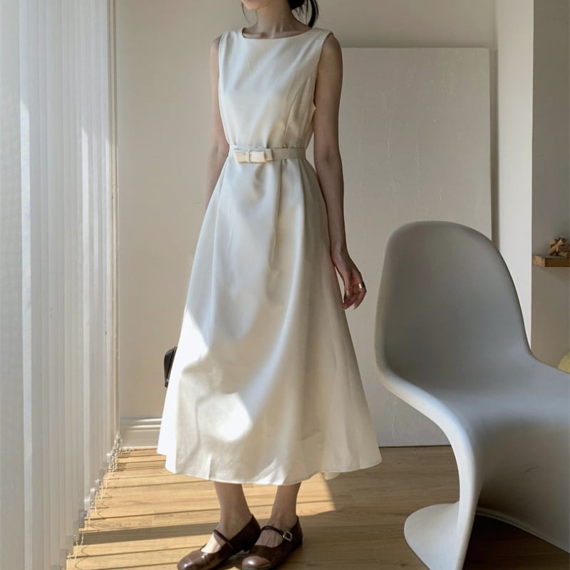 リボンベルト付きノースリーブワンピース♢全2色 11306