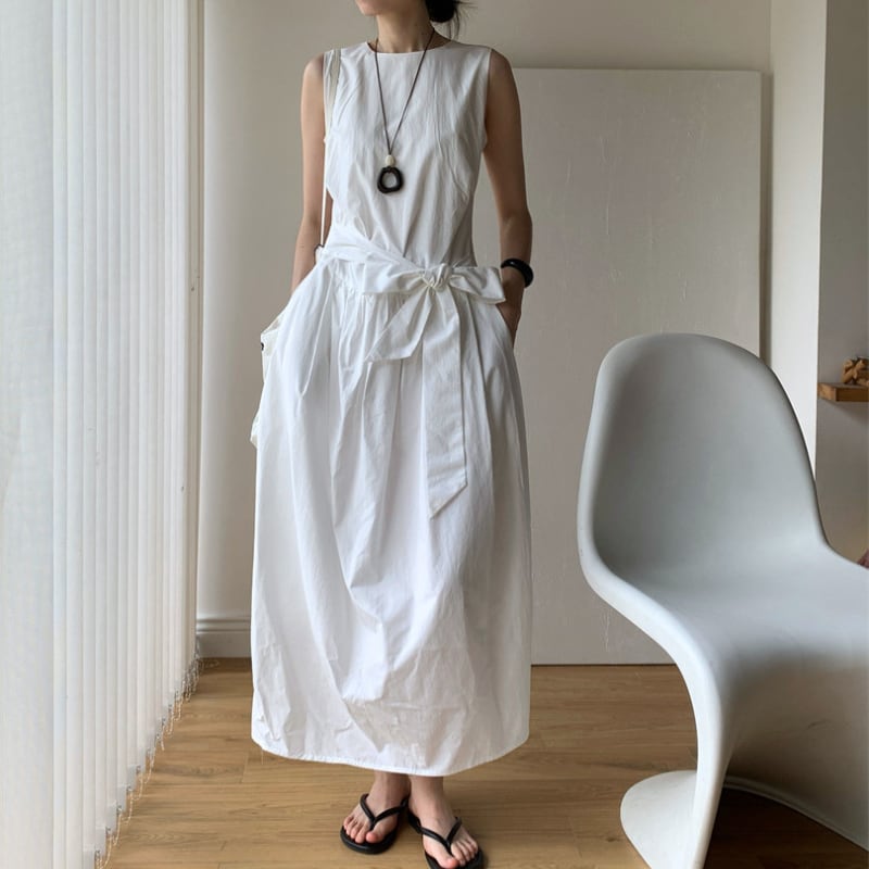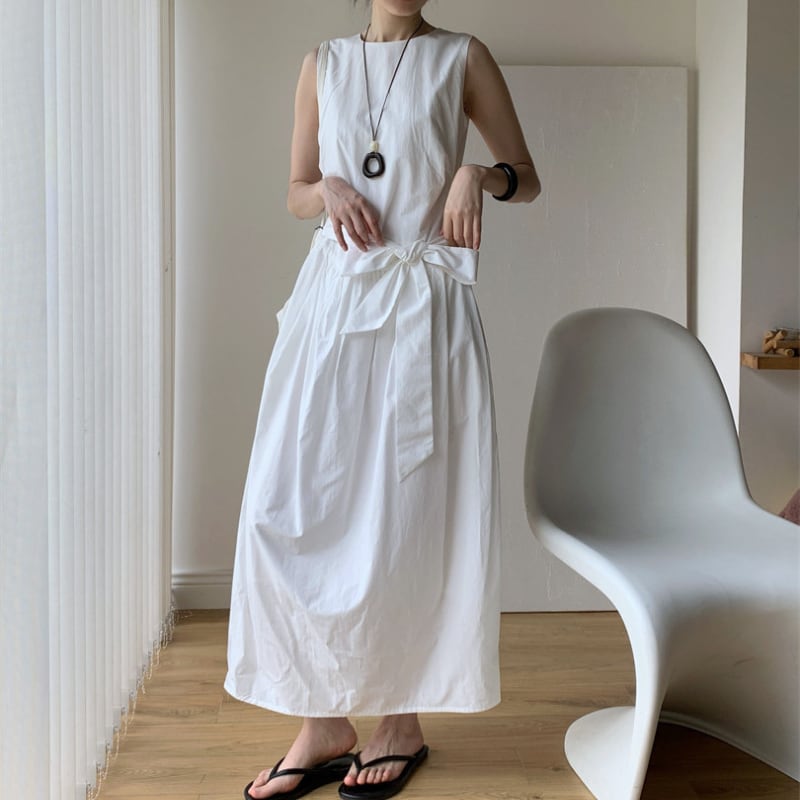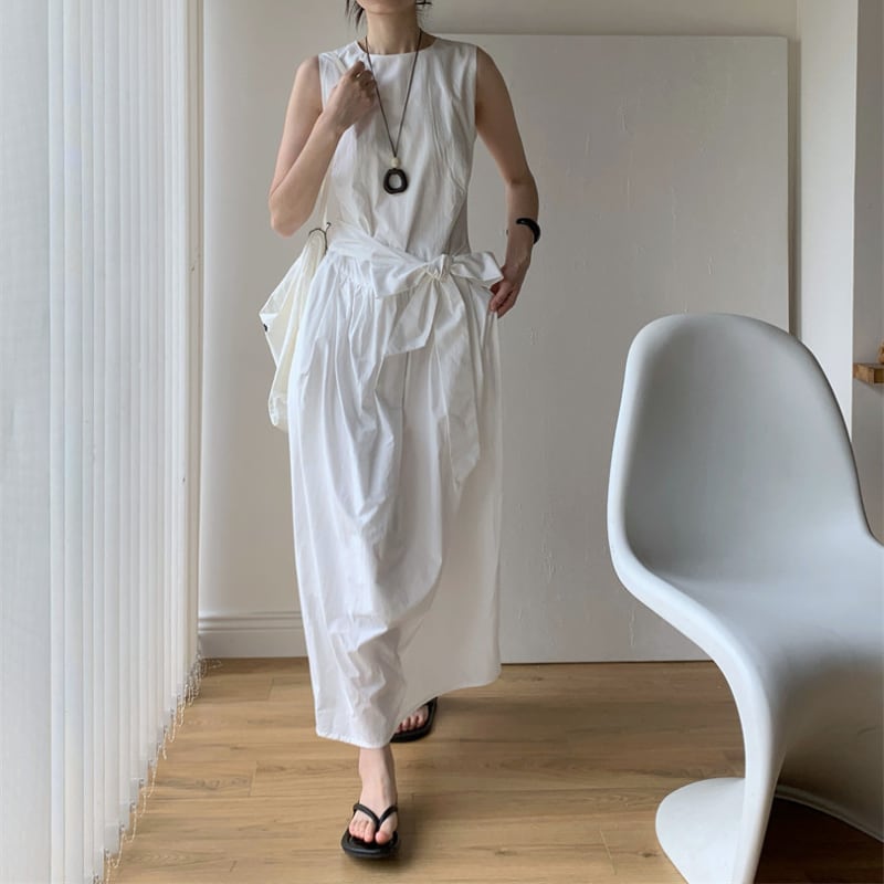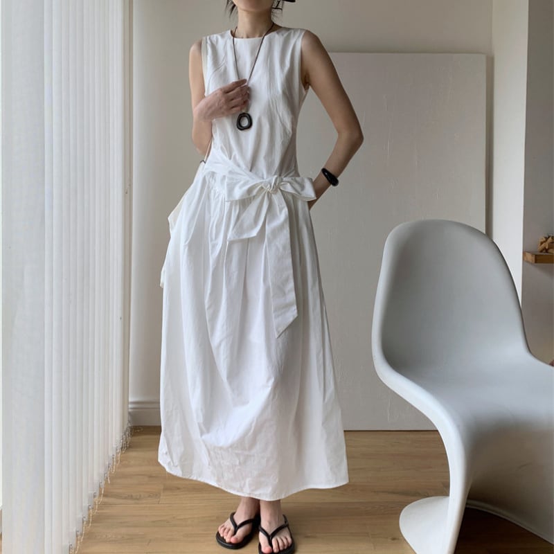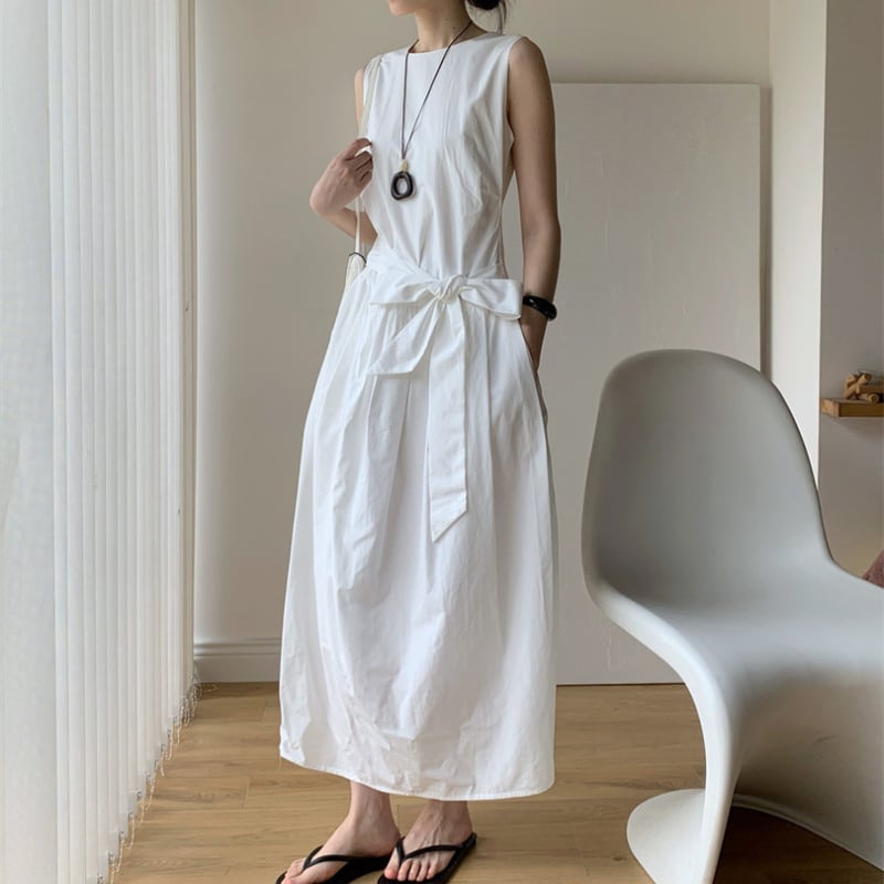 ノースリーブウエストリボンワンピース♢全2色 11307