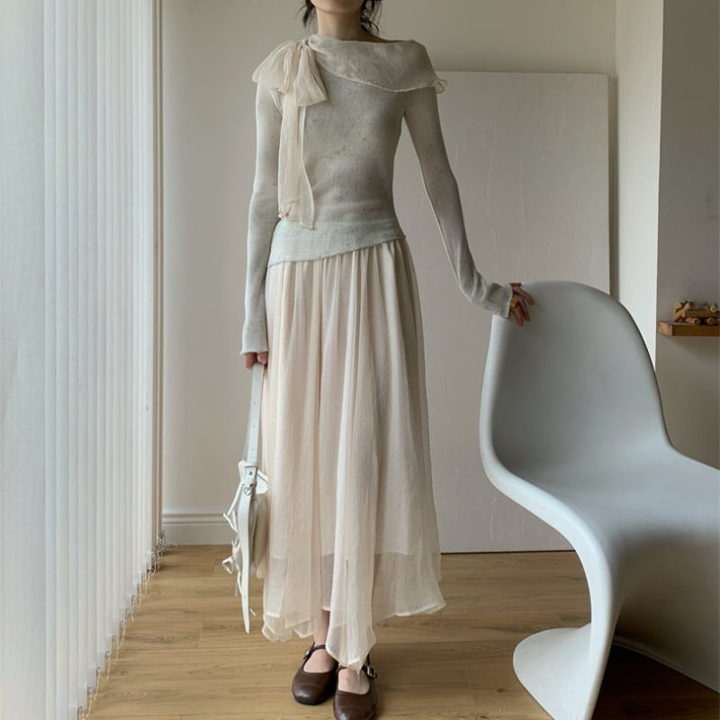 スカートは、透け感のある素材が涼しげで、