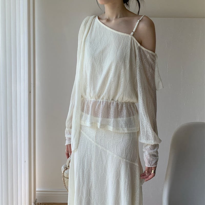 ワンショルダーが大人可愛いセットアップ♡