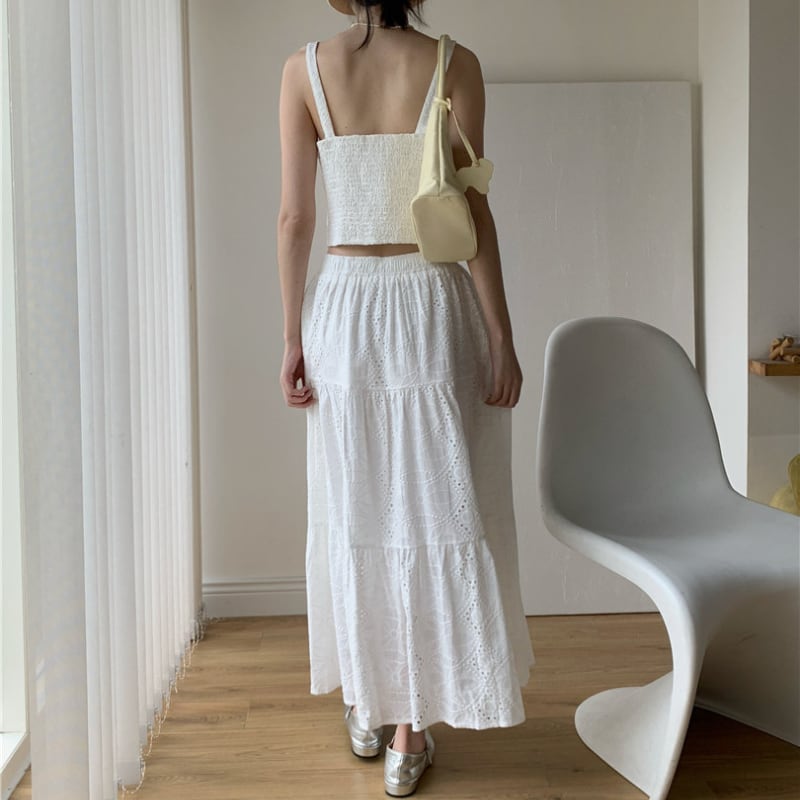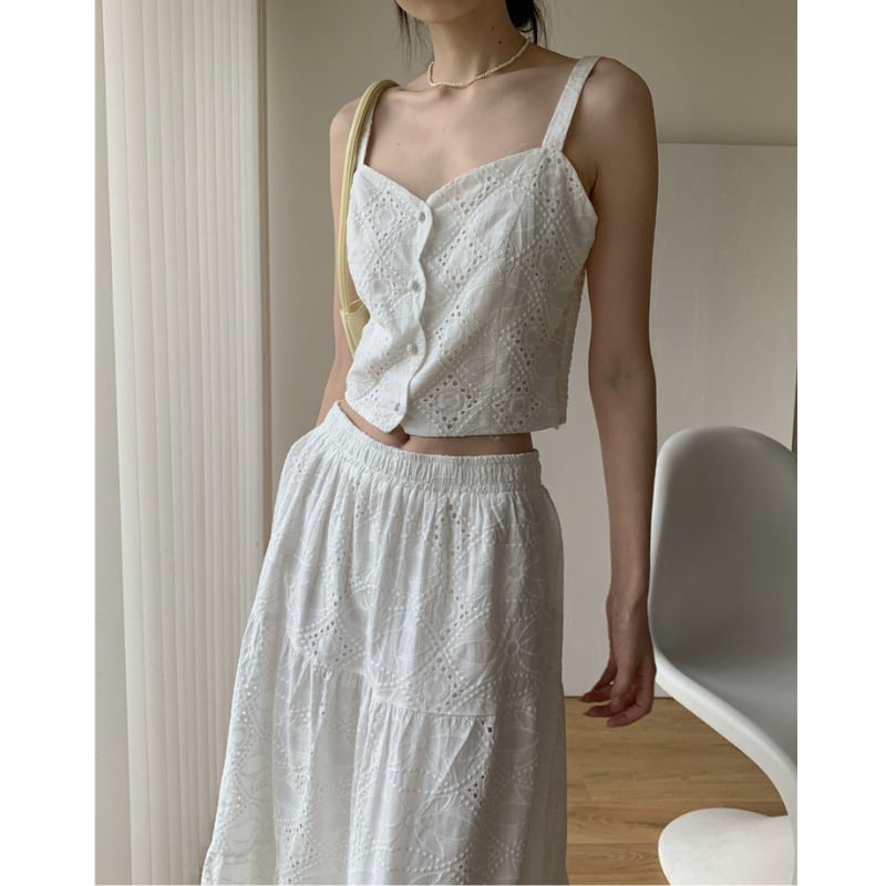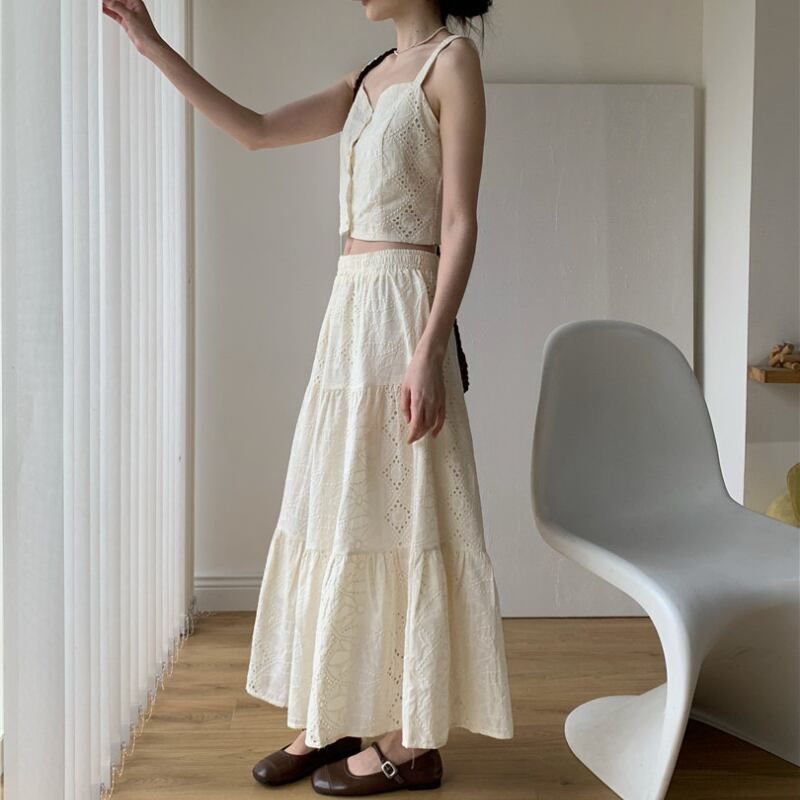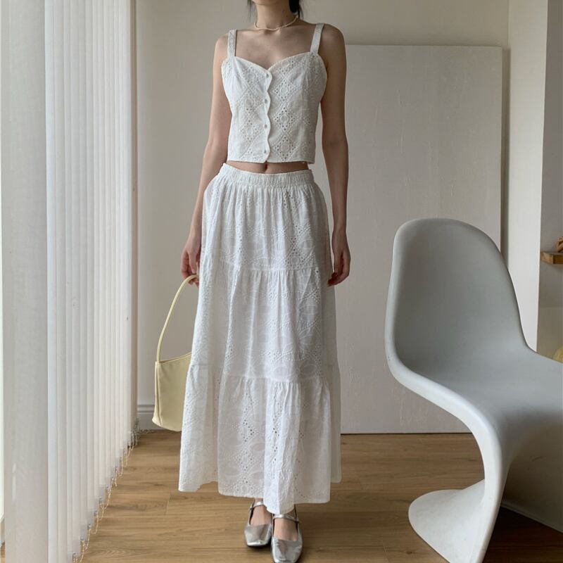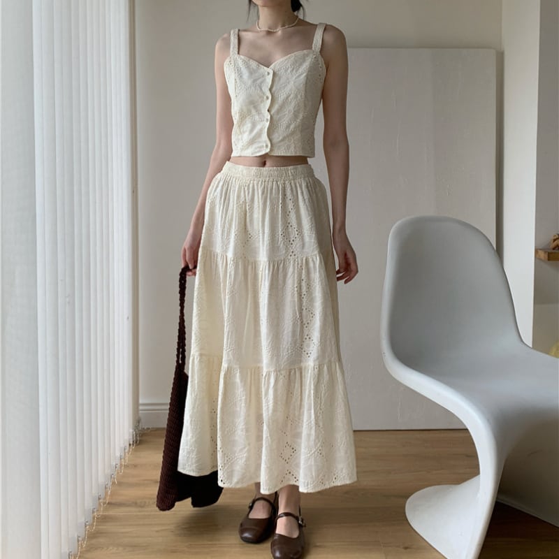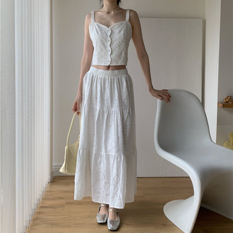 刺繍ジャカードショート丈キャミソール+スカートセット♢全2色 12385